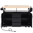 55.7'' Large Black Kitchen Island with 2 Drop Leaf - Rolling Cart with Power Outlet, 3 Drawers, Spice & Towel Rack for Kitchen, Dining Room Elevate your kitchen and dining space with this versatile 55.7'' large kitchen island, a perfect fusion of functionality, style, and space-saving design. Finished in a sleek black hue, this multi-purpose combo item seamlessly blends classic, farmhouse, luxury, and modern aesthetics—making it an ideal addition to any kitchen or dining room, especially small living spaces that demand flexible, integrated solutions. Crafted from high-quality P2 Grade Environmental MDF (CARB Phase II certified) for safety and durability, it features dual drop leaves, a built-in charging station, ample storage, and rolling wheels—adapting to your needs as a kitchen island, dining table, workstation, or console sideboard. Dual Drop Leaf Multifunctional Design. Measuring 55.75''W × 34.00''D × 36.50''H, this kitchen island boasts a versatile double-sided folding design with 4 sturdy drop leaf supports, allowing seamless transitions between multiple configurations. Fully extended, it transforms into a spacious dining table for 4-6 people; fold one drop leaf to use as a workstation or office desk (perfect for placing computers, books, or small appliances); fully folded, it tucks neatly into a corner as a console sideboard or entryway table—ideal for apartments and small spaces where every square foot counts. The two 47''W × 8.1''D drop leaves extend the countertop to a maximum width of 34''D, providing ample space for a microwave, coffee maker, or meal prep tasks. Ample Customizable Storage Space. Designed to eliminate kitchen clutter, this island offers abundant storage options to keep your essentials organized. It features 3 deep drawers with metal handles (each supporting up to 10 lbs) for storing utensils, napkins, and small kitchen tools; 2 groove barn doors (blending traditional and modern farmhouse styles) that open to reveal an adjustable shelf (supports up to 75 lbs), perfect for plates, cups, and larger items. The middle open storage compartment provides easy access to frequently used items, while a built-in spice rack and towel rack keep condiments and towels within reach—combining practicality with a rustic-chic look. Convenient Built-In Charging Station. Stay powered up in the kitchen with the integrated charging station, featuring 2 AC outlets and 2 USB ports (aligning with user-friendly convenience for everyday use). This sophisticated feature lets you effortlessly charge kitchen appliances like coffee makers, juicers, and toasters directly on the countertop, eliminating the need for extra extension cords and keeping your kitchen workspace neat and organized. Premium Durable Construction. Crafted from P2 Grade Environmental MDF that is CARB Phase II certified, this kitchen island meets strict California air quality standards with low formaldehyde emissions (≤ 0.11 ppm) to prioritize your family’s health and well-being. The sturdy structure boasts a middle tabletop weight capacity of up to 400 lbs, while the durable laminate finish and exquisite sealing process create a waterproof, scratch-resistant surface that is smooth to the touch and built to last through daily use. Moveable & Stationary Versatility. Equipped with 5 hidden 360° smooth-rotating wheels (with one centrally placed for enhanced stability), this island offers easy mobility to move around your kitchen or dining room as needed. Two of the wheels are lockable, allowing you to secure the island in place for safe use. If mobility is not required, you can choose to forgo wheel installation—the cabinet’s sturdy base provides ample support for up to 300 lbs without any instability, functioning as a stationary side cabinet or island. Simple Assembly & Secure Shipping. Assembly takes 40-60 minutes, and the island comes with comprehensive step-by-step instructions, labeled parts, and all necessary hardware to ensure a seamless setup. If you encounter any challenges during assembly, assistance is readily available. This combo item ships in 2 secure packages: Package 1 (51.73''L × 19.96''W × 5.51''H, 71.61 lbs) and Package 2 (28.15''L × 19.76''W × 7.72''H, 47.31 lbs), with a total package weight of 118.92 lbs. All parts are carefully packed to ensure they arrive in perfect condition, free from transit damage. The fully assembled island weighs 110.41 lbs. Product Details - Color: Black; actual color may vary slightly due to lighting, monitor display parameters, or material variations; final appearance is subject to the physical product. - Material: P2 Grade Environmental MDF (CARB Phase II Certified), Laminate Finish. - Style: Classic, Farmhouse, Luxury, Modern. - Type: Kitchen Island, Rolling Kitchen Cart, Folding Dining Table, Workstation, Console Sideboard (Combo Item). - Features: 2 Drop Leaves (4 Sturdy Supports, 33 lbs Weight Capacity Each), 3 Deep Drawers (10 lbs Capacity Each), 2 Groove Barn Doors, 1 Adjustable Shelf (75 lbs Capacity), Built-In Charging Station (2 AC Outlets, 2 USB Ports), 5 Hidden 360° Rotating Wheels (2 Lockable), Spice Rack, Towel Rack, Open Storage Compartment, Waterproof & Scratch-Resistant Finish, Moveable/Stationary Option. - Island Width: Medium (40-55in). - Shape: Rectangular. - Assembled Dimensions: 55.75''W × 34.00''D × 36.50''H. - Product Weight: 110.41 LBS. - Package Details: 2 Packages Total. Package 1: 51.73''L × 19.96''W × 5.51''H, 71.61 LBS; Package 2: 28.15''L × 19.76''W × 7.72''H, 47.31 LBS; Total Package Weight: 118.92 LBS. - Package Includes: 1 × Kitchen Island (All Parts), 2 Drop Leaves, 3 Drawers, 2 Barn Doors, 1 Adjustable Shelf, Charging Station, 5 Wheels, Spice Rack, Towel Rack, Detailed Assembly Instructions, All Necessary Hardware. - Assembly: Required (Estimated 40-60 minutes; labeled parts and clear instructions included). - Country of Origin: Viet Nam. - Applicable Scenarios: Kitchen, Dining Room, Small Apartments, Workspace