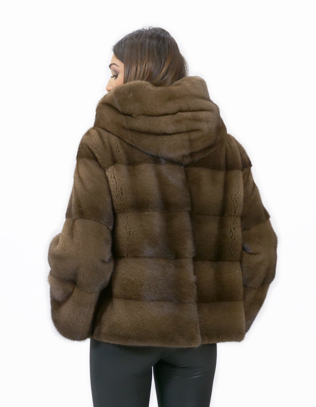 $ 1533.6170cm Horizontal Mink Jacket Size 52 with Fur Hood in Scanbrown