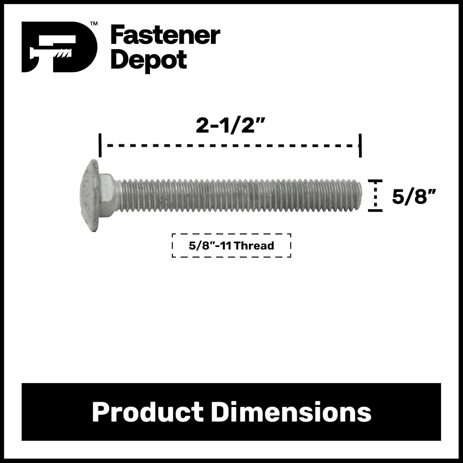 About this item Coarse Thread Superior Corrosion Resistance Hot Dipped Galvanized Finish Grade A Full Thread Minimum Tensile Strength: 60,000 PSI Coating Thickness: for sizes 3/8“ & under : 0.0017” (43 microns) | for sizes over 3/8“ : 0.0020” (50 microns) Specifications Met: ASTM F2329/F2329M or ASTM A153/A153M RoHS Compliant Package Includes: 25x Carriage Bolts 25x Flat Washers 25x Hex Nuts