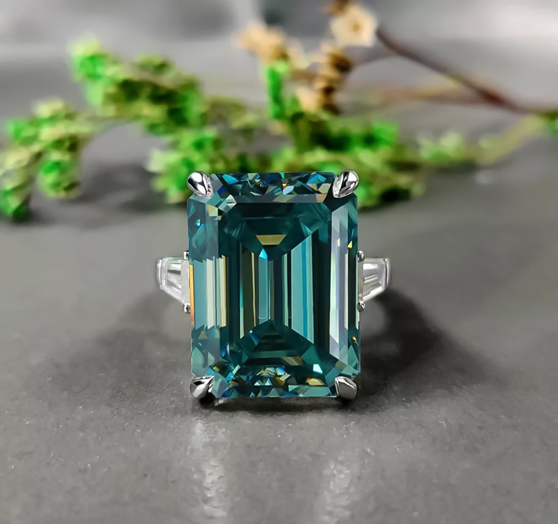 $ 102.335.20 Ct Emerald Cut Certified White Solitaire Diamond 925 Sterling Silver Ring