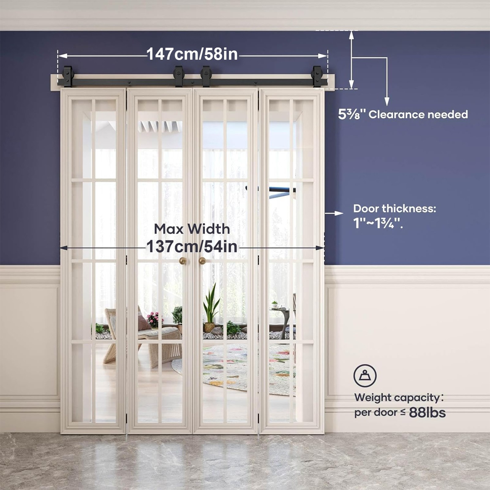 70in Bifold Sliding Door Track,Sliding barn door hardware kit,Black,Brand New-