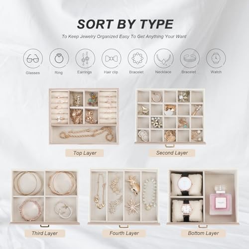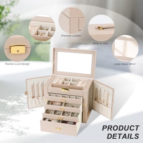 Menu 1. We require immediate payment. 2. We currently accept payment via eBay managed payments only. 3. Once payment is cleared, we will dispatch your shipment within 1-3 business days. Please refer to the "Shipping" tab for more information regarding shipping speed to your destination. Jewelry Box for Women, 5-Layer Jewelry Organizers Box, Large Jewelry Storage Box for Girls, Jewelry Holder Organizers Gift for Valentine's Day, Christmas (Apricot) Product description LARGE CAPACITY - jewelry box has ample storage space. It can meet the storage needs of various jewelry such as bracelets, necklaces, rings, earrings, and earrings. Each side has 4 necklace hooks and 2 pockets. Large jewelry storage makes your jewelry more organized. EXCELLENT QUALITY - Durable jewelry organizer box made of sturdy structure and high-quality materials. The large jewelry organizer is made of premium engineered wood it is not easy to deform. Wrapped by the excellent PU leather makes the box more durable and easy to clean. Premium imitation fur inner lining can protect your beloved jewelry from scratches and damage. STYLISH APPEARANCE - Large jewelry organizers and storage with an elegant and stylish appearance. It comes with a handle on the top. Each drawer has a metal handle which is convenient to use. INTIMATE DESIGN -The Jewelry Organizers' double-door design on both sides makes better use of the storage space. T are four layers of drawers on the front, which not only take into account the appearance but also make the jewelry storage box have a larger capacity. HOLIDAY GIFTS - Whether it's for a friend or your loved one, this jewelry organizer box will make an unforgettable memory on any holiday - Weddings, Birthdays, New Year, Valentine's Day, Thanksgiving Day, and Christmas. PLEASE MESSAGE US IF YOU HAVE ANY OTHER QUESTIONS, AND MANY THANKS FOR READING ALL OF THIS. Copyright ©#. All Rights Reserved.