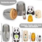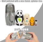 5 Cartoon Animal Patterns - Elephant:5.5", Panda:4", Polar Bear:3", Tiger:2.3", Penguin:1.5", a perfect match, catering to your little one. High Quality - Our stacking toys are meticulously crafted from natural wood by our skilled artisans, with a smooth finish, splinter-free and durable. Child-friendly - Rest assured about the safety of the paint on these nesting dolls. Our water-based, BPA-free paint guarantees no shedding or chipping issues, making the nesting dolls 100% child-safe. Preschool Education - Our animal pattern dolls make excellent preschool toys, enhancing children's hand-eye coordination, problem-solving skills, and color recognition abilities. Widely Used - These handcrafted nesting dolls are perfect gifts for birthdays, Thanksgiving, Christmas, and New Year parties. Moreover, these Matryoshka dolls are versatile additions to your home, office, kindergarten, and more. Product Description The video showcases the product in use. The video guides you through product setup. The video compares multiple products. The video shows the product being unpacked.
