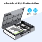 Compatible 3.5&2.5 hard drive: Max compatible dimensions (outside): 16.2x11.73x3.7 CM; 3.5 inch Hard drive protection case with bracket that can place 4 drive of 2.5 inch at the same time or 3.5 external hard drive; Portable hard drive case can easily fit into any backpack or briefcase Unique Design: High-hardness PP&ABS material protect the 3.5 hard drive case from everyday knocks bumps;Book opening design with close fitting to ensure your hard disk is free from moisture, anti-static and dust-proof; And did good job for fully protect your hard drive data Functional Storage: The hard drive storage box with label stickers to convenient for you perform and more scientific classification and archive management of the vast data which subtly reduce the space occupation and clutter of the desktop; Variety of colors choose for you-5 Pcs SIZE:16.2*11.7*3.69cm Comprehensive Protection: The built-in EVA reinforced shock-resistant cushions wrapped on hard drive case both sides and four 2.5 hard disks are separated by brackets to maintain stability and eliminate the possibility of friction damage due to interaction with parts and make your data storage more secure 3.5 Hard Drive Case: The hard drive storage box perfect fit for 3.5inch HDD;Outside card slot is easy to stack up and down which can quickly secure a hard drive to keep the neatly of the desktop