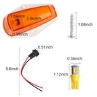 5pcs Amber LED Cab Roof Top Marker Lights for Ford F150 F250 F350 1973-1997 Description: Universal for Trucks, trailers, tractors, semi-trailer, Dump Truck, bus, boat, special vehicle, etc. IP65 Waterproof, Free to Use in Heavy Rain. Multi-function: This Amber Lens Cab Marker Light functioned as Roof Marker Light, Roof Top Running Light, Top Clearance Light, Cab Running Light etc. Plug N Play,2 wires, Some Car Need Drill the Hole to install. Attention: This is For 1973 1974 1975 1976 1977 1978 1979 1980 1981 1982 1983 1984 1985 1986 1987 1988 1989 1990 1991 1992 1993 1994 1995 1996 1997 Ford F-150 F-250 F-350 F Super Duty Pickup Trucks stock roof cab marker. Also Can replace most truck/SUV/RV/van's cab roof lights. Positioning & drilling is needed when installed on some vehicles. You may also need silicone gel or other material to cover the hole. Please make sure you can handle all the operation before buying, in case of any hassle. Note: Familiar operation of drilling and wiring is required in order to make everything work. Special care should be taken. DO NOT drill until all positioning is done. Drilling is unnecessary if your vehicle comes with stock roof running lights. (some car need drilling and wiring required) Specification: Type: Cab Marker Top Roof Lights Material:ABS Plastic Light Color: Amber Covers are made of high quality ABS plastic, won't fade from exposure Soft pads included, fit for fast feet or curved roofs Color: Amber Lamp Bead: T10 LED lamp Voltage: 12V Waterproof Grade: IP65 Quantity:5PCS Application: Roof Cab Marker , Roof Running Light, Clearance Light Connection mode: Black wire —— negative pole Red wire —— positive pole Fitment: Fit 1973-1997 Ford F150 F250 F350 F Super Duty Pickup Trucks, Also Can replace most truck/SUV/RV/van's cab roof lights (some car need drilling and wiring required). Package Included: 5 x Cover with Base Housing 5 x LED Bulb 5 x T10 interface socket 10 x Screws