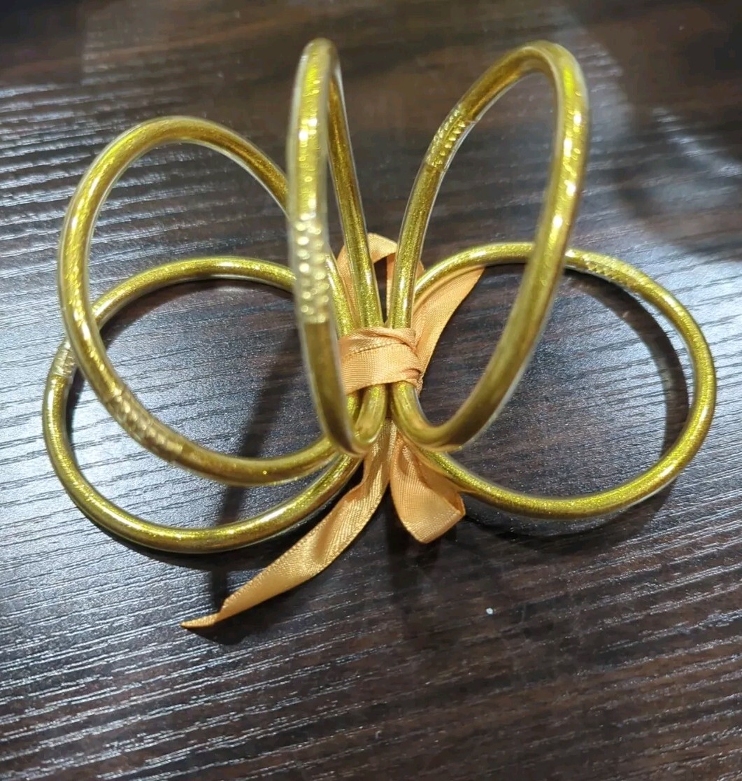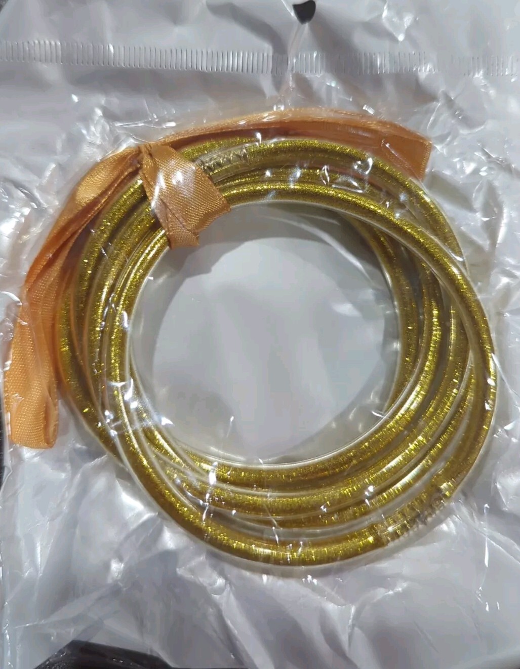 Add some sparkle to your wrist with this stunning Bangle bracelet set. The set includes five pieces, each featuring a glittery jelly design in a beautiful gold color. Made from high-quality silicone material, this bracelet is both durable and comfortable to wear. Perfect for any occasion, this bangle bracelet set is a great addition to any jewelry collection. Whether you're dressing up for a night out or adding some glam to your everyday look, these bracelets are sure to make a statement. So why wait? Order now and add some fun and style to your wardrobe!