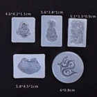 Feature: Flexible soft silicone jewelry pendant making mold Easy to use and clean One Kit includes 5 different Buddhism Jade shapes, Suitable for making earring drop, necklace, bracelet pendant, keychain or other jewelry pieces. Material: silicone Color: white Size: More detailed,please see photo. Quantity: 5 Pcs, Note: Due to lighting effects, monitor\'s brightness , contrast settings etc, there could be slight differences in the color tone of the pictures and the actual item. Please allow 1-2mm differs due to manual measurement, thanks. Package includes: 5 Pcsx Silicone Mold.