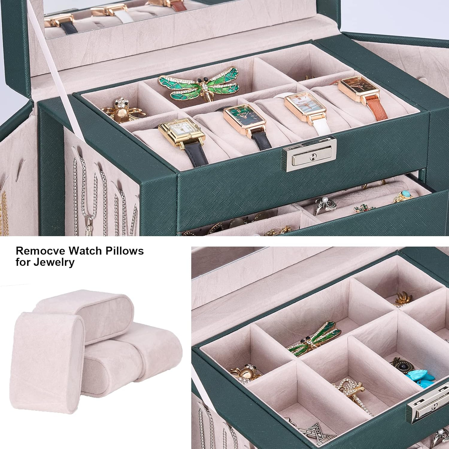 Store New Arrivals Add to Favorite View Feedback Contact Jewelry Box 5 Tier Jewelry Storage Organizer Jewelry Case with 4 Drawers with Mirror Lockable Jewelry Boxes for Women Gift for Loved Ones for Your Jewelry Sturdy UJJB003G Description Item model number JJB003 Style Vintage Number of Items 1 Country of Origin China Batteries Included? No Batteries Required? No Finish Textured Special Feature Jewelry Organizer,Large Capacity,Removable,Sturdy Product Dimensions 6.3"D x 10.63"W x 11.22"H Material Engineered Wood, Faux Leather, Wood, Stainless Steel, Glass, Ceramic, Bamboo, Crystal Number of Drawers 3 Finish Type Textured Closure Type Lock Item Weight 6.91 pounds Occasion Christmas, Wedding, Anniversary, Birthday, Valentine's Day Special Features Jewelry Organizer,Large Capacity,Removable,Sturdy Target Audience Women Mounting Type Table Top Color Green Inner Material Leather Shape Rectangular Recommended Uses For Product earrings, eardrops, rings, necklaces, brooches, cufflinks, pendants and watches Included Components jewelry box LARGE CAPACITY JEWELRY BOX:5-tier and 2-wings can organize all your jewelry. The top layer with lock and mirror to store valuable jewellery. Contains 4 pillows, 4 earring grids and 7 ring cushions, 12 equal-sized squares, one large sunglasses grid. The middle 3 layers can be interchanged MULTI-FUNCTIONAL JEWELRY ORGANIZER:The jewelry box It can be put a couple watches, earrings, rings, necklaces, hairpins,brooches, bracelets, and some sunglasses distributed into all the drawers. Avoid jewelry tangle and loss and tarnish in the air, keep your desktop neat and clean STURDY and ELEGANT for WOMEN:The jewelry box frame is made of medium density fiberboard, the structure is stable and will not dent or fall apart. The exterior is Faux Leather, which can be cleaned with a damp cloth without cracks or peeling. The interior soft velvet lining can protect your jewelry from scratches.Elegant and suitable for women of all ages JEWELRY ORGANIZER BOX with LOCK and MIRROR: Intimate and convenient. You can save your precious jewelry box in the lockable grid to prevent loss and child trouble. The mirror on the top layer is convenient for you to choose the right jewelry to match your makeup, and find the objects you want more quickly GIFTABLE-BEAUTIFULLY CRAFTED:The jewelry box exquisite workmanship and exquisite hardware. For GF, MOM and daughter, it is a good choice for Valentine's Day, Mother's Day, birthday or Christmas SMALL FOOTPRINT: 10.67" L x 11.30" H x 6.22 W, It can be placed on your dressing table or vanity, it will not take up a ton of space Product Description Jewelry Box with Mirror and Lock Large embedded mirror makes it easy to choose jewelry to match your makeup The lockable top can hold your precious jewelry Just A Meant Jewelry Box for You A great way to keep different kinds of jewelry organized. Soft interior velvet lining to protect your precious jewelry and avoid tarnish in the air. Smell size and large capacity to make your jewelry neat and handly. Beautiful jewelry box as gifts for woman. Stable and durable jewelry organizer. Good choice for Mother's Day, Birthday or Christmas Large Jewelry Organizer in Different Ways for All Your Jewelry It will not take up a ton of space Layer 1 SIZE:7.68" L x 5.91" W x 1.34" H Divided into earring area and ring area. To store your large number of rings and earrings, studs. Layer 2 SIZE:7.68" L x 5.91" W x 1.34" H Divided into 12 equal squares. To Store your hairpins, brooches, chunky and gothic style earrings. Layer 3 SIZE:7.68" L x 5.91" W x 1.34" H Divided into four equal rectangles. To Store your bracelets, bands, jewelry necklaces and sweater necklace. Layer 4 SIZE:7.68" L x 5.91" W x 2.56" H A large space without divided. To store your sunglasses, chains and other big items. Two side doors for a necklace 8 hooks on each side are designed for your various necklaces.The pendant can fit in the bottom pocket.Prevent your necklace from becoming entangled Detachable watch pillows Detachable watch pillow.If you don't need so many watch pillows, you can take them out to make room for other jewelry. Cube structure, occupy small desktop area Small footprint, 5 storeys of storage space.You can put it next to the dressing table or the washstand. Imitation leather Fake leather that won't peel or split It's easy to clean and can be wiped with a wrung wet towel ABOUT US We offer the best prices around on high quality products. Our E-store includes media such as books, movies, music and games while offering electronics, toys, sporting apparel, clothing, tools, general home, garden items and more. SHIPPING We are always working hard to ensure your package arrives as soon as possible. Please understand that some factors like weather, high postal traffic, and the performance of shipping companies are outside of our control. We offer free shipping to the lower 48 states and ship within 2 business days of payment, usually sooner. We do not accept P.O. Boxes. Please provide a physical address. For shipping outside of the continental USA, we only use eBay's Global Shipping Program.The item is shipped to KY and then sent to the rest of the world. International customers are responsible for all duties and taxes. Continue to check out in order to calculate costs for shipping the item to your country. Messages regarding eBay's Global Shipping Program MUST be directed at eBay EXCLUSIVELY. RETURNS We offer a 30-Day Return Policy on items which you are not completely satisfied with. You have the option for a full-refund or an exchange of the item. No returns are available on items shipped outside of the USA. PAYMENT We accept PayPal. CONTACT US This page content is yet to come Please ad us to your favorite seller and visit again later Thank You CUSTOMER SATISFACTION We try our very best to make sure every customer is completely satisfied. If there's a problem, message us! We're happy to help. WE ACCEPT Copyright © 2021 AutoDS. | All Rights Re