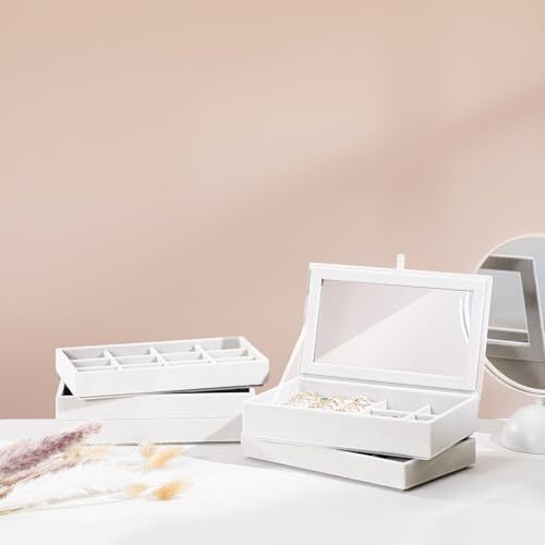 5-Tier Jewelry Organizer Tray in Warm White 8.27 x 4.72 x 5.71 Inch Storage Solution