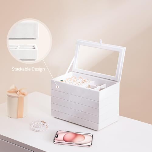 Included Components: stackable jewelry trays, earring organizer tray, jewelry organize Finish Type: Brushed Batteries Included: No Part Number: PC-08364995 MPN: Does Not Apply gtin13: Does Not Apply Item Weight: 2.16 pounds Date First Available: March 13, 2024 UPC: Does Not Apply Number of Drawers: 5 EAN: Does Not Apply Country of Origin: China Type: Does Not Apply Occasion: Christmas, Friendship Day, Graduation, Prom, New Year, Memorial D Recommended Uses For Product: Necklace, Rings, Bracelets, Earring, Stud Earrings, Hoop Earring, Size: 5 Layers, 8.27 x 4.72 x 5.71" Brand: Does Not Apply Item Height: 1 Product Dimensions: 8.27"D x 4.92"W x 4.92"H Special Features: jewelry organizers and storage, jewelry drawer organizer, earring Item Width: 1 Style: Modern Material: Velvet Special Feature: jewelry organizers and storage, jewelry drawer organizer, earring Color: Warmwhite Item Package Quantity: 5 Item model number: PC-08364995 Manufacturer: Does Not Apply Item Length: 1 Target Audience: Mother, Mom, Women, Girls, Teens, Ladies Batteries Required: No Finish: Brushed Shape: Rectangular