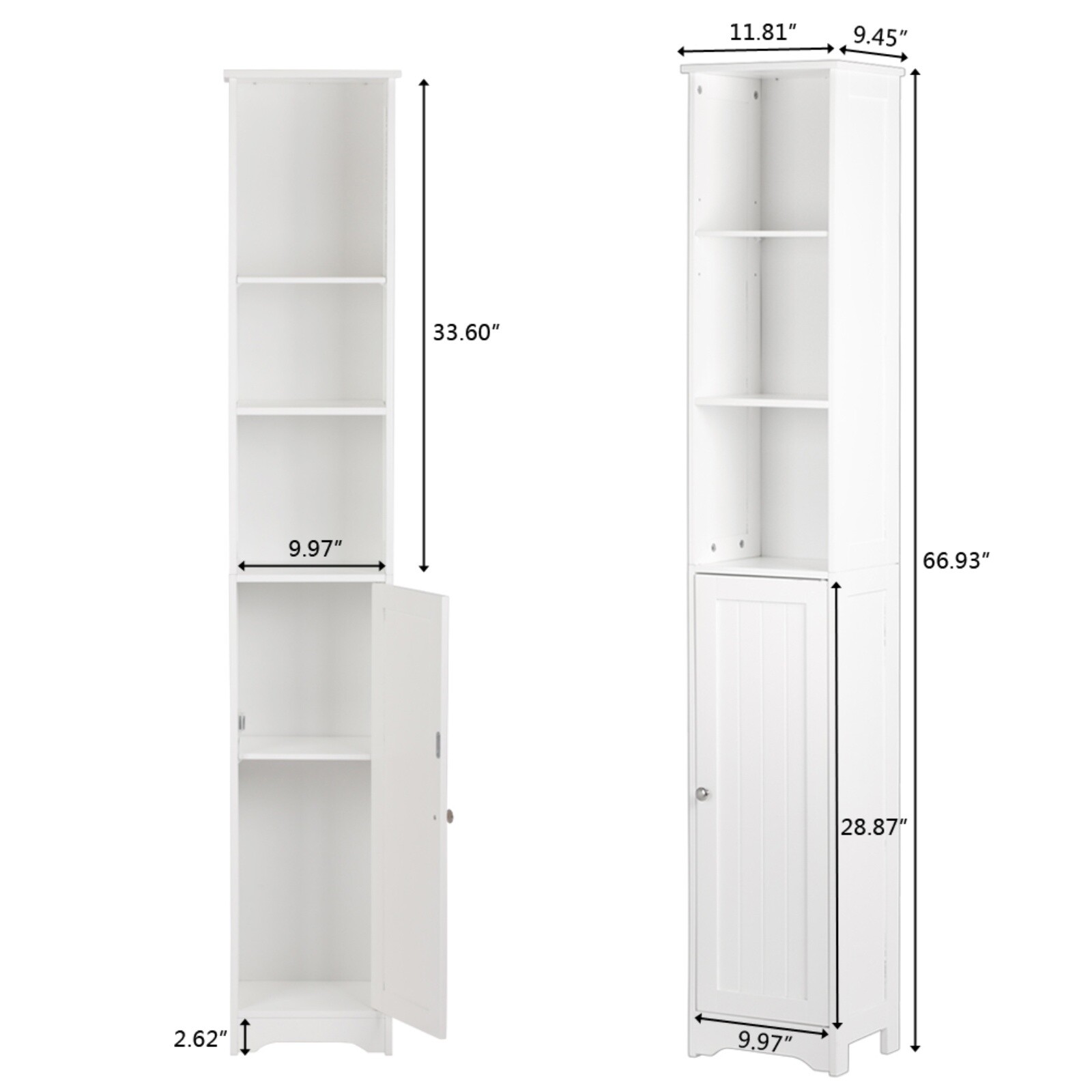 5-Tier Storage Cabinet - White, MDF, Adjustable Shelves Storage & Narrow 5-Tier Storage Cabinet - White, MDF, Adjustable Shelves Storage & Narrow 5-Tier Storage Cabinet Introductions: This is a simple and modern style wall-mounted standing bathroom cabinet. Adopting high quality and hard MDF sheet, it is waterproof and moisture-proof. One door and five-layer design maximizes the storage space and can help you classify your items better. You can put a variety of toiletries, cosmetics, and other sundries. In addition, it features anti-dumping device to further ensure the safety of use. This bathroom cabinet is not only used as bathroom cabinet, but also can be used as side cabinet and bedside table. In addition to the bathroom, you can also put it in the bedroom and living room to meet your diverse home design needs. Features: 1. Made of high quality and hard MDF sheet 2. Chrome handle 3. One door and five layers 4. Anti-dumping device 5. Waterproof and moisture-proof 6. High quality 7. Easy to assemble Specifications: 1. Material: MDF 2. Color: White 3. Dimensions: (11.81 x 9.45 x 66.93)" / (30 x 24 x 170)cm (L x W x H) 4. Storage Room Dimensions: The First/The Second Layer: (10.12 x 9.45 x 9.25-14.57)" / (25.7 x 24 x 23.5-37)cm (L x W x H) The Second Layer: (10.12 x 9.45 x 10.43)" / (25.7 x 24 x 26.5)cm (L x W x H) 5. Door Dimensions: (10.12 x 29.33)" / (25.7 x 74.5)cm (L x W) 6. Weight: 21.16 lbs / 9.6kg Package Includes: 1 x Bathroom Cabinet 1 x User's Manual 1 x Accessories Package Welcome Delivery details Terms of sales About us Contact us Welcome Welcome to our store! Elevate your lifestyle with us. Enjoy a fulfilling shopping experience! Delivery details Your order will be dispatched within 3-5 business days. Once shipped, you will receive all order details via email. Stay informed every step of the way. Sit back, relax, and look forward to your order! Terms of sales Upon payment receipt, your order will be promptly dispatched. Delivery times vary by location and logistics provider. We ensure swift shipping with tracking details. Contact our customer service team for any querie!!! About us We are dedicated to providing high-quality products and exceptional service. Trust us to be your top choice. Your satisfaction is our priority! Find your perfect option with us! Contact us If you encounter any issues, please don't hesitate to reach out to us. Our team is here to assist you promptly and effectively!!! Brand Jutoop Item Length 11.81'' Item Width 9.45'' Item Height 66.93'' Item Weight 21.16 lbs MPN JT-33910436 Model 5-Tier Storage Cabinet Type Storage Cabinet Material MDF/Chipboard Door Style Shaker Color White Number of Shelves 5 Mounting Free Standing Item Length (Interior) 11.8'' Item Width (Interior) 9.45'' Item Height (Interior) 66.93'' Item Depth 9.45'' Assembly Required Yes Additional Parts Required Yes Department Adults Unit Quantity 1 Unit Type Unit Country/Region of Manufacture China