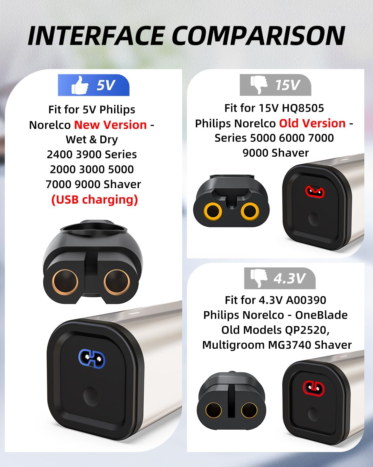 Store New Arrivals Add to Favorite View Feedback Contact 5V UL Charger for Philips Norelco Wet & Dry Electric Shaver & One Blade 360 Description Item model number PSD0502000US Amperage 2 Amps Number of Items 1 Color black Brand Nicpower Connector Type Barrel Connector Package Dimensions 4.61 x 2.72 x 1.85 inches Compatible Devices philips norelco series charger Item Weight 2.89 ounces Manufacturer Nicpower Input Voltage 5 Volts Compatible Phone Models function(f) {var _np=(window.P._namespace("DetailPageProductOverviewTemplatesJava"));if(_np.guardFatal){_np.guardFatal(f)(_np);}else{f(_np);}}(function(P) { P.when('A').execute(function(A){ A.on('a:truncate:po-attribute-truncate-3:updated', function(data) { var isTruncated = !data.truncateInstance.getIfTextFits(); var seeMoreElement = document.getElementById('po-attribute-see-more-id-3'); if(seeMoreElement) { seeMoreElement.style.display = isTruncated ? '' : 'none'; } }) }); })); Philips Norelco Series (2400) X3001/90, (2600) X3052/91, (3600) S3243/91, (3900) S3341/92, (5400) S5880/81, (5000X) X5004 X5004 X5004 06, (7) 200) S7887/82, QP2724/90, QP2834/70, MG5910/49, MG5900/49, MG7910/49, MG7900/49, MG9510/60 See more Wattage 10 watts Included Components 1 x AC Adapter, 1 x 5Ft Cable, 1 x Brush Flawless Compatibility: Compatible with Philips Norelco Series (2400) X3001/90, (2600) X3052/91, (3600) S3243/91, (3900) S3341/92, (5400) S5880/81, (5000X) X5004 X5006, (7200) S7887/82, (i9000) X9000/90 X9001/91 X9002/82, (i9000 Prestige) XP9204/85 XP9203/81 XP9201/88, (i9000 Prestige Ultra) XP9403/88 XP9402/86 XP9401/92 XP9405/84 XP9400/89 Electric Shaver Wet & Dry Trimmer Razor (Not Applicable to Older Models) Flawless Compatibility: Compatible with Philips One Blade 360 QP2724/90 QP2834/70 QP4631/90 QP6542/70 QP6552/90 QP4530/90 QP1924/70 QP1324/20, Fit for Multigroom Series MG5910/49 MG5900/49 MG7910/49 MG7900/49 MG9510/60 MG9525 Electric Shaver (Not Applicable to Older Models) Output & Wattage: 5V-2A 10W (Works with 5V-1A 5W Shaver), Not fit for 15V 4.3V 8V Attention: Double-check that your device model matches the compatible ones listed before purchasing to ensure compatibility. Verify voltage and connector from the image, not fit for 15V - BG7030 BG7040 BG5025 S9987 QP6531 QP6530 QP6520 MG5750 MG7750 MG7770 MG7790 Shaver, 4.3V - A00390 QP2520 QP2521 QP2522 MG3740 Shaver, 8V - HQ850 QP2530 QP2630 Shaver Industry-Leading Safety: This product is certified by UL as its premium quality and safety system have passed UL's rigorous tests. (After strict short-circuit, overcurrent, overvoltage, overheating protection test) 1-year manufacturer warranty Product description 2000 Series 2400 X3001/90, 2600 X3052/91 3000 Series 3600 S3243/91, 3900 S3341/92 5000 Series 5400 S5880/81, 5000X X5004 X5006 7000 Series 7200 S7887/82 i9000 Series i9000 X9000/90 X9001/91 X9002/82, fit for Prestige XP9204/85 XP9203/81 XP9201/88, fit for Prestige Ultra XP9403/88 XP9402/86 XP9401/92 XP9405/84 XP9400/89 for One Blade Series QP2724/90 QP2834/70 QP1924/30 QP4631/90 QP6542/70 QP6552/90 QP4530/90 QP1924/70 QP1324/20 QP1324/30 QP1424/65 for Multi groom Series MG5910/49 MG5970/49 MG7910/49 MG7970/49 MG9510/60 MG9520/50 MG9522/50 MG9525 ABOUT US We offer the best prices around on high quality products. Our E-store includes media such as books, movies, music and games while offering electronics, toys, sporting apparel, clothing, tools, general home, garden items and more. SHIPPING We are always working hard to ensure your package arrives as soon as possible. Please understand that some factors like weather, high postal traffic, and the performance of shipping companies are outside of our control. We offer free shipping to the lower 48 states and ship within 2 business days of payment, usually sooner. We do not accept P.O. Boxes. Please provide a physical address. RETURNS We offer a 30-Day Return Policy on items which you are not completely satisfied with. You have the option for a full-refund or an exchange of the item. No returns are available on items shipped outside of the USA. PAYMENT We accept PayPal. CONTACT US This page content is yet to come Please ad us to your favorite seller and visit again later Thank You CUSTOMER SATISFACTION We try our very best to make sure every customer is completely satisfied. If there's a problem, message us! We're happy to help.