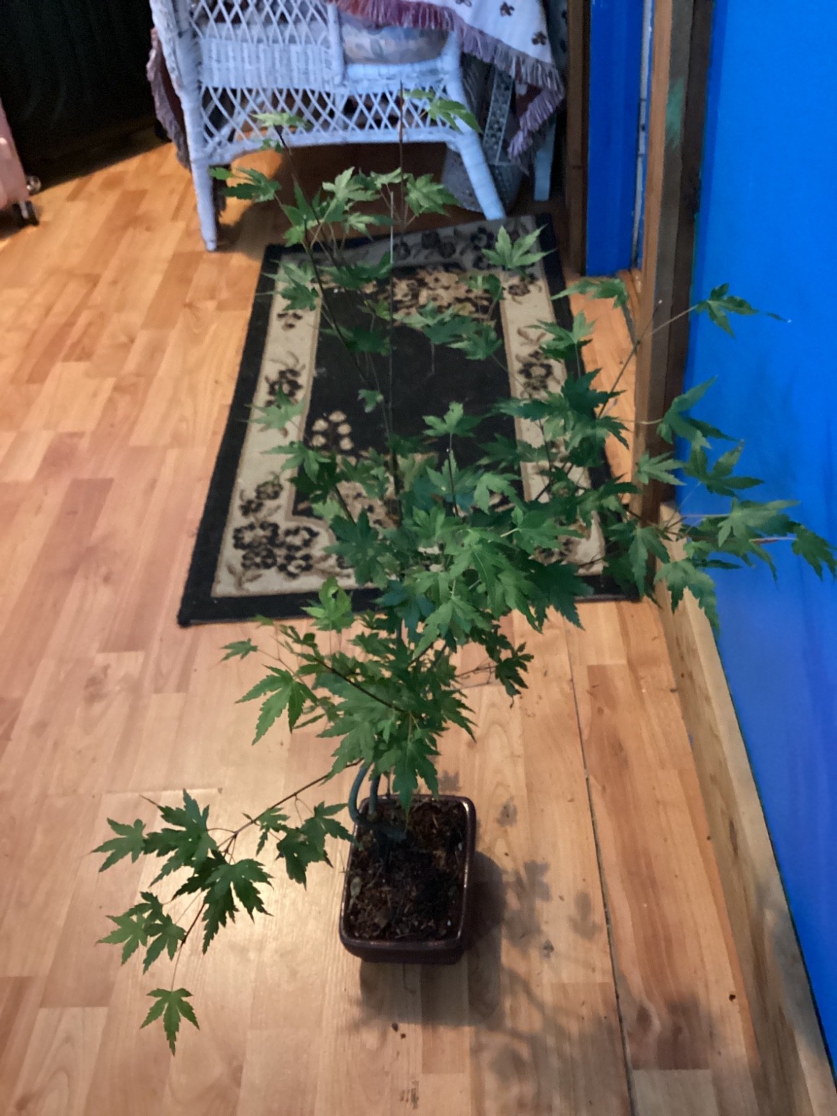 THIS IS AN BEAUTIFUL 5 YEAR OLD JAPANESE MAPLE ACER PALMATUM BONSAI TREE. POT SIZE 5X6 1/4 Rectangle shape, tree and pot height = 27 Inches, tree height= 24 inches, tree width = 19 X 21, trunk measures 3/4 inch, root base measures 2 1/2 inches.