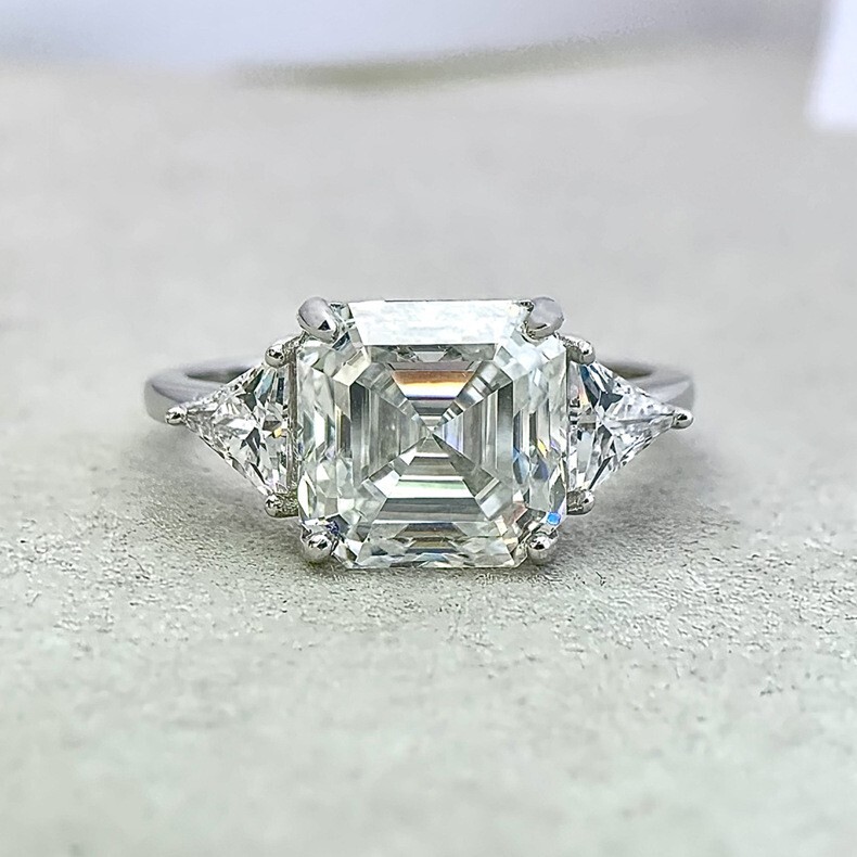 $ 17.953ct Moissanite 8x10mm Diamond 925 Sterling Silver Engagement Ring for Women