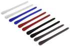 Package included: 5 pair Color: black, white, blue, red, gray Product size (L x W): 65x7mm; Hole inner diameter approx.:1mm Material: silicone Fits thin metal eyeglasses legs