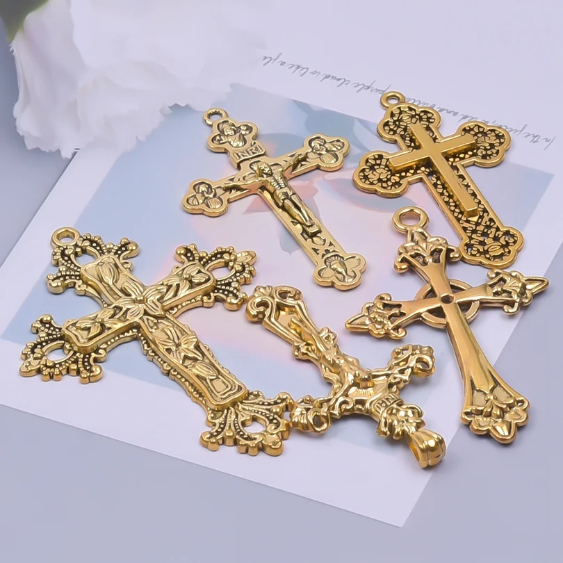 Home5pcs/lot Religion Crosses Alloy Charm Mix Gold Color Crucifix Pendant Accessorie