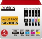 Model number: PGI-280 XXL CLI-281 XXL Page Yield: PGBK (Large Black) is 600 pages per cartridge, Small Black is 6360 pages per cartridge, Color is 830 pages per cartridge WHAT IS INSIDE? 1 x Large Black,1 x Small Black , 1 x Cyan,1 x Yellow,1x Magenta The Box Is for Reference Only Compatible for Printer: Pixma TR7500, TR7520, TR8500, TR8520 Pixma TS6120, TS6220, TS6320, TS702, TS8120, TS8220, TS8320, TS9100, TS9120, TS9520, TS9521C Professional Performance: Toner Kingdom exclusive patented ink formula ensu res superb prints. Whether you need to print images in vivid color or pages with clear and crisp text, you can count on Toner Kingdom cartridges to provide you with superior results. Instruction Steps : Step 1: Make sure that the power is turned on, then open the scanning unit / cover. The print head holder will moves to the replacement position. Remove the ink tank where the ink runs out. Push the tab (A) and lift the ink tank to remove. Step 2: A. Prepare a new ink tank. Hold the ink tank with the orange protective cap pointing up. B. Lift up the tab on the orange protective cap to remove it off Gently. Step 3: Close the scanning unit / cover. Just be careful not to get your fingers caught.
