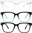 OLIVENA Blue Light Glasses Gradient Blue Frame,Square Oversized Blue Light Blocking Glasses For Women Men,Anti Eyestrain & UV Glare 1pack Black+Clear+Leopard 2 PACKS (6PCS) NEW IN BOX WITH SOFT CASE AS SHOWN