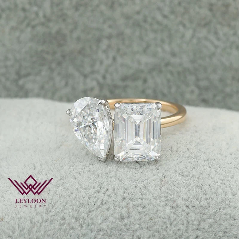 6 CTW Two Stone Pear Cut & Emerald Cut D Colorless Basket VVS Moissanite Ring ๐ Available Metals: A) 5X Platinum Vermeil, B) Solid 10K Gold, C) Solid 14K Gold, D) Solid 18K Gold, E) Solid 950 Platinum. โ HIGHEST QUALITY Certified White Gold, Rose Gold, Yellow Gold & 950 Platinum. (Not Trash). ๐ Ring Size: 2,3,4,5,6,7,8,9,10,11,12,13,14,15,16 and anything between these ring sizes available. It could be 1/4, 1/2, or 3/4. We Fit It to your Exact Finger Size no matter what size you want. ๐ Main Stone: HARDEST Quality VVS GRA Certified Hand Cut Moissanite (Pass Diamond Testers) โจ Side Stones: Premium Quality VVS Moissanite. (Pass Diamond Testers) ๐ Certified: GRA - GRC ๐ Polish: Excellent Polish. Shiny & Clean for Maximizing Sparkles. โฆ Cut: Hand cut Excellent cut & Symmetry with Crisp & Sharp Edges/Corners. ____________________ ๐ 100% Handmade with GORGEOUS & Accurate Details. Itโs an Art, not only a Valuable Material. ๐ 60 Days Money Back Guarantee for Any Reason even if you don't Fall In Love with it. ๐คฏ FREE LIFETIME Main Stone Warranty & Side Stone Replacement. (No Color Change). ๐ FREE LIFETIME Jewelry Cleaning & Re-plating. ๐ Hypoallergenic. Skin Friendly. Doesnโt cause any type of Allergies. ๐ Customizable with/to Your Favorite Stone/Jewelry Type & Shape. ๐ FREE STUNNING Random GIFTS On Every Order (we sell them for +$200 up to over +$700). ๐ฅฐ Amazing Wooden Gift Boxes for Your Main Jewel & its Gifts. ๐ฅณ Gift Wrapping Available (we wrap with no tags or receipts, ready to present). ๐คฉ VIP Customer Service to Make Your Dreams Come True in the Most Fantastic Way. ๐ FREE SUPER FAST FedEx Express Shipping. ____________________ ๐โ + Our 5X Platinum Vermeil: Platinum is 9.4 times RARER & slightly more DURABLE than gold. Rings with platinum end up more EXPENSIVE than gold because the DENSITY of platinum is a lot HIGHER and the QUALITY is EXTREMELY PURER. Rings THICKLY plated FIVE TIMES with platinum offer MUCH STRONGER PROTECTION against wear and scratches than gold plated jewelry. Therefore they LAST the LONGEST while giving you a SHINY LOOK ALL THE TIME. ๐โ + Our Rare Stone Quality: Here you have the NATURAL looking color of the diamonds in a RARE size with extraordinary VVS1 clarityโฆ Weโre offering the GREATEST QUALITY and VALUE at the BEST PRICE with this design by using very SPECIAL types of GRA Certified Moissanite stones. Natural diamonds in this color, clarity and size are super rare and very hard to find. Some of them easily cost over $10,000 per carat. (please message me for natural diamonds like this color, size and shape so I can give you the accurate price based on your preferences) ____________________ ๐ข๐๐ FREE FAST EXPRESS SHIPPING Processing + Shipping = Receiving Time PROCESSING: Only 1 available. This ring will be shipped within 48 hours. (Other sizes require customization for 2-3 weeks. ) SHIPPING: 2-6 days via FedEx Express for FREE โ Youโll get updated with the tracking code, once your package is shipped. โ We ship with insured FedEx only which is very secure. โ An adult signature is required at the time of delivery. _____________________ โ๐๐ CUSTOMIZATION/PERSONALIZATION: Custom orders with me are SUPER EASY & COMFORTABLE, no matter if youโve never done it before or youโve done lots of them. ๐ค I break down everything into small steps. And we go through the steps one by one together. On each step, youโll get to pick or guide me from the options I represent. ๐ Once we get to the end, your dream comes true. ๐คฉ๐ Because every single detail is just exactly what you want. ๐๐ ๐จ HOW TO DESIGN YOUR RING: A โ Send me some/one image similar to your idea. Or tell me whatโs your favorite shank, profile or stone? So I can show you some options to choose from. B โ Next, I will start designing it right away. Iโll send you some screen shots from what I designed. We can adjust any part of it together, until itโs exactly the way you want it to be. C โ After we get to the ideal conclusion, Iโll render several Ultra High Quality 3D images and a 4K video, so you see what the end result is gonna look like in reality. D โ The moment you approve everything, we start making it. Once itโs finished, weโll ship it the same day. + 3D IMAGE SAMPLES: Before you order yours, you can ask me for some samples of the 3D rendered images and videos. Youโre gonna absolutely love the quality, because they look like real rings. ๐คฉ๐ + Designing your dream ring with me is gonna be a fantastic experience. While you just sit and order, youโll watch how I take care of everything from your idea to the end product in the SIMPLEST & GREATEST way possible.โ โ------------ ๐ AVAILABLE GEMS: All stones are available - Colorless & Colorful Moissanite or Simulated Moissanite. Natural & Lab Grown Diamonds in Colorless or Colorful. Natural and Lab made Emerald, Ruby, Sapphire, Amethyst, etc. Just ask! ๐ฅ AVAILABLE METALS: All metals are available - 925 Sterling Silver, 5X Platinum Vermeil, 9K Solid Gold, 10K Solid Gold,14K Solid Gold, 18K Solid Gold (in Rose, White or Yellow), Platinum 950. ๐ AVAILABLE MATCHING PIECES: We can make matching pieces for this product. Engagement Rings, Bridal Sets, Wedding Bands, Earrings, Studs, Hoops, Bracelets, Bangles, Necklaces, Pendants, and anything youโd dream of. We can design all to set with this item. ๐จ๐จ๐ง๐ฆ AVAILABLE OTHER JEWELRY: We make jewelry as per occasion and celebration like birthdays, birth months, anniversaries, motherโs day, valentine's day, fatherโs day, memorials, thanksgiving, zodiac signs, graduation days, and many more per your request. ____________________ โโโโโ 5 STAR PRISTINE PROMISES: โฆ๏ธ 100% Satisfaction Guaranteed โฆ๏ธ Ethically Sourced โฆ๏ธ FREE Lifetime Ring Resizing โฆ๏ธ FREE Complimentary ENGRAVING โฆ๏ธ 100