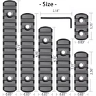 Free eBay listing template designed by dewiso.com 6 Pack Lock Picatinny Rail Aluminum 3/5/7/9/11/13 Slot Set M-Lok Picatinny Rail. About this Item This product is a single Picatinny rail that allows the attachment of all standard 21mm Picatinny-spec, rail-mounted accessories. It provides just enough rail space where you need it for each accessory, and is available in six different lengths. Installation is simple with the included screws and an Allen wrench tool, making it easy to install or remove. The pack includes rail sections with 3, 5, 7, 9, 11, or 13 slots, along with 13 sets of matched screws, 13 sets of locking T-Nuts, and 2 Allen wrenches. The ultra-light rail features solid polymer construction and a low-profile design to reduce bulk. The weight for each length is as follows: 13 slots (0.65 oz), 11 slots (0.56 oz), 9 slots (0.48 oz), 7 slots (0.36 oz), 5 slots (0.28 oz), and 3 slots (0.19 oz)—much lighter than aluminum alloy—while maintaining high strength and safety. These rail sections are injection molded from a proprietary reinforced composite material, offering enhanced strength and durability while keeping the weight low. The beveled ends help reduce snagging and eliminate sharp corners and edges. Contact us We can be contacted at any time through eBay messages if you have any questions, comments or product requests. We will respond to you within 24 hours and do our best to help you out! We encourage our customers to contact us with any questions or concerns! We'd like to be sure you are completely satisfied with your purchase. Payment We accept PayPal, PayPal credit, Visa, Mastercard, American Express, Discover, Google Pay and Apple Pay. Immediate Payment is required. Shipping We provide FAST, FREE SHIPPING to the Continental 48 US States. We do not ship to Alaska, Hawaii, APO/FPO, PO Boxes or any US Protectorates. PLEASE PROVIDEA PHYSICAL ADDRESS. Your order will be processed with in the allowed time frame. Most items ship out with 1-2 Business days after payment is received. Please. not that some orders may be shipped in multiple packages. . Returns If you have any problem with product we can accept return within 30 days after purchase. If you want to return product, you can contact with us. THANKS FOR SHOPPING!