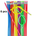 This is a random assortment of six flexible pencils. They will flex, turn, and twist. These pencils can also be sharpened like regular pencils! The whole family will enjoy them! 6 Pieces per order 12" Bendy Flexible Pencil With Eraser For Kids Writing School Student • 12” FLEXIBLE PENCIL • 6 pieces in a poly bag • Rubbery, bendable material • Can be sharpened just like a regular pencil • Great for small prizes QTY: 6 pencils Brand New