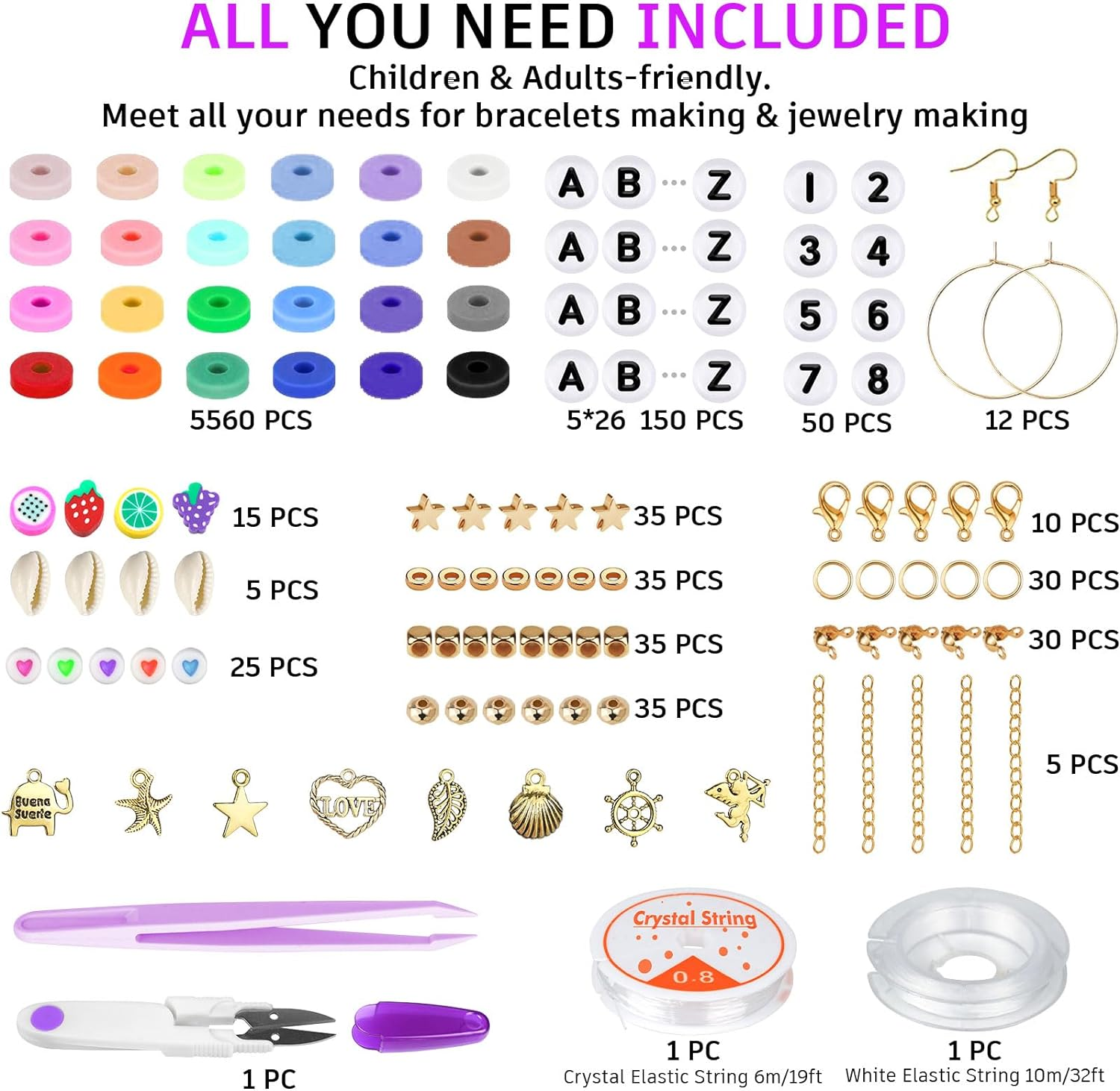 Menu Other Items Feedbacks About Us Contact Us Add To Favorites 6000 Clay Beads Bracelet Making Kit, 24 Colors Flat Preppy Beads for Friendship Bracelets, Polymer Clay Bead with Charms for Jewelry Making, Crafts Gifts for Girls Ages 6-12 ALL YOU NEED INCLUDED - A must for jewelry making lover. A box of about 5520pcs flat polymer clay beads in 24 colors and 550pcs charms kit( contains random letter beads, smile beads, colorful heart beads, shells, pendants, jump rings, lobster clasp, etc.), 2 roll of 5 meters elastic strings, a scissors, to meet all your needs for bracelets making & jewelry making VIBRANT COLORS - Polymer clay beads in 24 bright colors meet your requirements of colorful DIY objects. You can make bracelets with mixed polymer clay heishi beads and your favorite pendants. We prepare all you need. You can make a charm vivid bracelet/ necklace/ earring easily. Imagination is more inportant than skills here for bracelet jewelry making PREMIUM QUALITY, SAFE TO USE - Beads are made of polymer clay, strong plasticity, and durability. The diameter of clay heishi beads is 6mm with a 2mm hole and thickness is 1mm. The clay beads for bracelets are lightweight, not easy ro fade, comfortable to wear when you wear it at the beach or pool POLYMER CLAY BEADS WIDE USE - Perfect size for DIY crafts like jewelry making, bracelets, necklaces, earrings, anklets, keychains, and any ornaments. It’s an ideal gift adding some decorations for your daughter, granddaughter, sister, besties. A meaningful and cheerful gift choice for birthdays, Valentine's Day, Mother's Day, Christmas, Thanksgiving Day, etc TEEN GIRLS GIFTS TRENDY STUFF - It’s time to bring this trendy gifts home to surprise your girls. This friendship bracelets kit not only to enhances girls crafts skills but also a way to enjoy the fun of sharing and self-expression. An excellent crafts gift for girls crafts projects party VERIFIED BY TRANSPARENCY - We strictly control the quality of the beads to ensure that you can receive the beads without defects. We appreciate all age bracelet making crafts enthusiasts Product Description GIONLION POLYMER CLAY BEADS JEWELRY MAKING KIT - WE PREPARE ALL YOU NEED! Polymer clay is a type of hardenable modeling clay based on the polymer polyvinyl chloride (PVC). Due to its non-toxic, strong plasticity, and durability, Gionlion polymer clay beads are ideal for jewelry-making earrings, bracelets, necklaces, pendants, anklets, kid’s crafts, and other beading projects. A set of colorful beads and tools meets all your beaded requirement, never bothered by object-missing trouble. ✓5500+ polymer clay beads and accessories can be used to create lots of bracelets and other handicrafts. ✓Polymer clay beads in 24 bright colors meet your requirements of colorful DIY objects. ✓Well-selected material, strong plasticity and durability, safe to use. ALL YOU NEED IN A NEAT STORAGE BOX! 5500+ pcs colorful polymer clay heishi beads, 24 colors, each color about 230 pcs. Random letter beads and number beads sets. Polymer clay beads, random style like fruits. 25 pcs colorful heart beads. 140 pcs gold round beads, flat beads and star beads. 8 pcs pendants. 5 pcs shells. 3 pairs of earing pendants. 2 strands of 5 meters elastic cord. Set of lobster clasp & binder tools. scissors. PREMIUM JEWELRY MAKING KIT Ideal Gift Choice A meaningful and cheerful gift choice for your daughter, granddaughter, sister, besties, or yourself on birthdays, Valentine's Day, Mother's Day, Christmas, Thanksgiving Day, etc. Enjoy DIY Bracelets with Family It’s also a fun activity, to make clay beads jewelry with family, to increase parent-child relationship and create an harmonious atmosphere. Beads Specification Material: Polymer-clay Diameter of clay bead: 6mm Diameter of the hole: 2mm Thickness of clay bead: 1mm KINDLY REMINDER As small parts contained, children should use it under the supervision of adults to avoid accidental eating. These colorful flat polymer clay beads are cut by hand. If the thickness of the clay beads you receive is inconsistent, please understand. Please allow a little error in size and quantity due to manual measurement and packing. Item Specification Item model number GL-BRACELET MAKING KIT - A6000 Item dimensions L x W x H 9 x 7 x 0.7 inches Age Range (Description) 6+ years old Color Multicolor Included Components A box of about 5520pcs flat polymer clay beads in 24 colors, 550pcs charms (contains random letter beads, smile colorful heart shells, pendants, jump rings), 2 roll 5 meters elastic strings, a scissors, and lobster clasp. Material Polymer clay, plastic Country of Origin China Style Classic Item Weight 14.9 ounces Theme Jewelry Size Small Model Name Bracelet making kit Seasons All Seasons Art Craft Kit Type Bracelet Making Kit Special Feature Adjustable Elastic Strings Product Dimensions 9 x 7 x 0.7 inches Number of Pieces 6000 SHIPPING FREE FREE SHIPPING We are always working hard to ensure your package arrives as soon as possible. Please understand that some factors like weather, high postal traffic, and the performance of shipping companies are outside of our control. We offer free shipping to the lower 48 states. We do not accept P.O. Boxes. Please provide a physical address. If you have a problem or question regarding your transaction please contact us immediately. We will work with you to resolve any problem you may have. Thank you