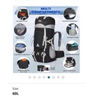 New without tags or storage back. Blue and gray. Never used. Please see all pictures HIGH-QUALITY HIKING BACKPACK】Made of high-quality durable nylon material, this camping backpack is water-resistant, tear-resistant, anti-scratch and wear-resistant. With better SBS zippers and high-strength fasteners to ensure their durability and smooth operation. sturdy construction and reinforced seams ensure that your gear remains protected and secure during your travels. Just take this backpacking backpack to cope with various harsh outdoor environments 【LARGE CAPACITY CAMPING BACKPACK】This hiking backpack measures 22.5 x 13 x 9.8 inches, with 60L large capacity but only 3.08 Ibs weight. With a multi-compartment design that includes 1 main compartment, 2 internal zipper pockets, 1 bottom shoe pocket, 2 side pockets, 1 front wet pocket, 1 hip belt pocket and 1 zipper waist pocket. Pays attention to the rational use of space and the diversity of storage methods to ensure that you can store and access items in order 【NOT INTERNAL FRAME & CUSTOMIZED COMFORT】This hiking daypack is specially designed for outdoor enthusiasts. Multi-position torso adjustment allows for a perfect fit for any body type. Built-in lightweight PE plate on top provides superior structural support, evenly distributes weight and reduces back and shoulder stress. Wide and thick S shoulder straps and ergonomic breathable back panel offer better ventilation and reduce burden, bringing a more comfortable experience【NOT INTERNAL FRAME】 【POWERFUL PLUG-IN SYSTEM】This hiking backpack allows you to flexibly adjust the external layout to your specific needs and preferences. Designed with multiple practical compression straps and attachment points, the external expansion system can better adapt to the carrying needs of different equipment and items such as sleeping bags, tents, tripods, trekking poles, ice axes, climbing ropes, and more. Must-have backpack for hiking, camping, backpacking, trekking, climbing and traveling 【PRACTICAL DESIGN TRAVEL DAYPACK】Rain cover included on the bottom pouch, providing dual protection for the backpack. Front U pocket access to main compartment for easy access and greater convenience. Whistle buckle and reflective signs to remind safety. Compatible with hydration backpack, with bladder sleeve and bladder hooks in the main compartment for a 3L hydration bladder(Note: hydration bladder is not included). Ideal camping backpack for men and women
