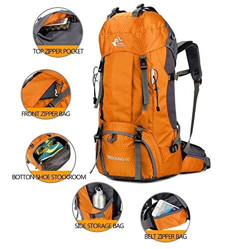 60L Lightweight Waterproof Hiking Backpack with Rain Cover Gold Edition
