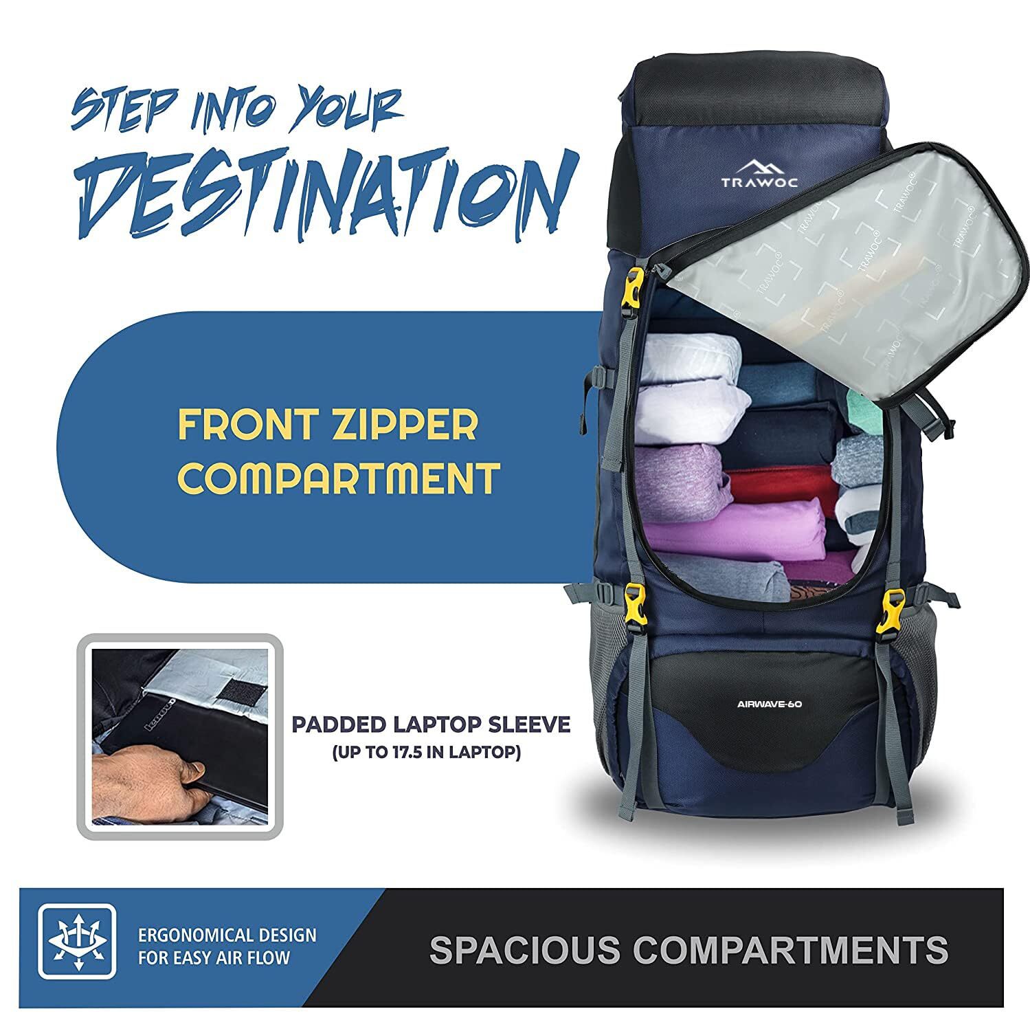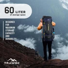 LARGE, SPACIOUS & MULTI UTILITY: This 60-liter hiking backpack is perfect for 4-5 day travel trips. It features a laptop sleeve in the main compartment and multiple pockets, straps, and buckles to fit all your travel gear. Ideal for camping and hiking adventures. SMART & TRENDY LOOKS: This trendy rucksack bag is a must-have for your hiking and mountaineering tours. With a large size of 82 x 31 cm, it is perfect for carrying all your travel essentials. Make a stylish statement while you travel with this fashionable backpack. WATER RESISTANT: Crafted from highly durable fabric, these backpack bags are designed to withstand extreme weather conditions, including rain and heat. The water-resistant feature not only keeps the contents safe and dry but also prolongs the lifespan of the bags, making them an ideal investment for any adventure seeker. CONVENIENT BACKPACK: This unisex backpack is perfect for men and women who love to travel. With ample space and sturdy construction, it's an ideal companion for trips and tours. Whether you're a tourist or an adventure seeker, this backpack will keep your essentials organized and easily accessible. If you encounter any issues with your purchase, please reach out to us for assistance. We are committed to resolving the issue promptly.