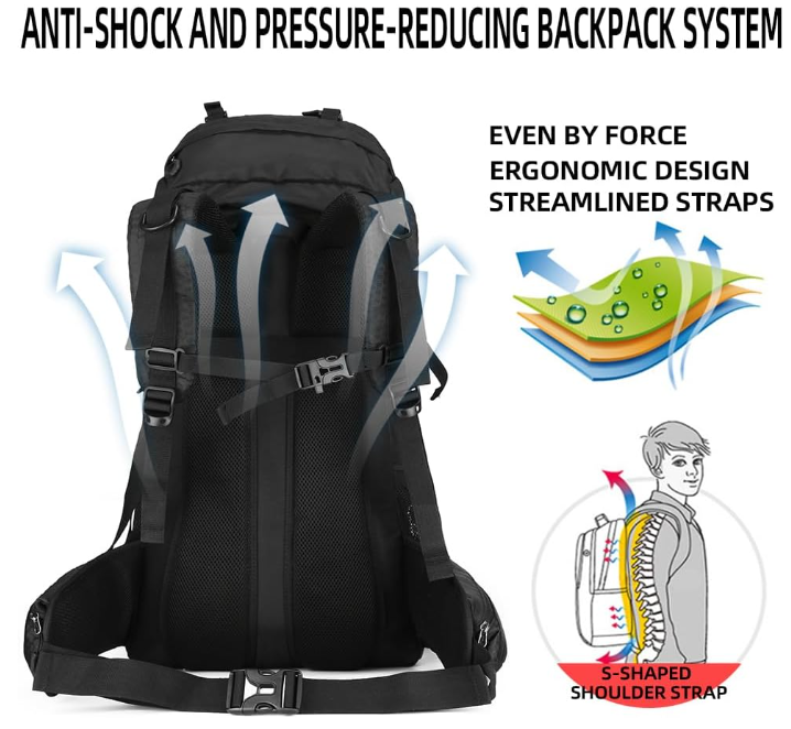 King'sGuard 60L Hiking Backpack, Waterproof Camping Backpacking Backpack for Men Outdoor Traveling Climbing Daypack with Rain Cover (Black) 60L Hiking Backpack: The dimensions of hiking daypack is 26.78*13*7.9 inch, generous main compartments designed by drawstring large opening, bottom separate shoe warehouse, 60L room suitable for 2 to 3 days of hiking or camping. Waterproof Backpack: This hiking pack is made of stable , wear-resistant and water-resistant nylon, we equipped with rain cover for ensure the items in the backpack stay dry in all circumstances, bless your outdoor travel perfect and smooth. Backpack for Outdoor: High-quality tear-resistant nylon fabric, reinforced stitches, stable buckle and zipper, emergency whistle buckle, D-shape hanging, multiple separate space, a premium outdoor backpack, hiking bag, camping backpack, traveling backpack. Ergonomic Backpack: This climbing backpack deisgned by ergonomic padded shoulder straps and back support, adjustable high-Load waist buckle system, scientifically distribute the weight, all specially for improve comfort and relaxing travel. hiking backpack for men and women. Service Guarantee: A great outdoor backpack for hiking backpacking trekking traveling and climbing.