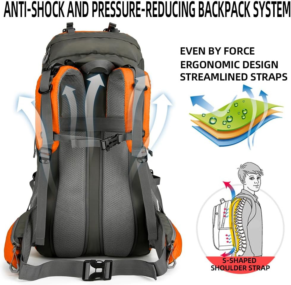 This backpack is a game-changer for outdoor adventures! The 60L capacity fits everything I need without feeling bulky, and the waterproof material keeps my gear dry in any weather. Super comfortable straps make long hikes easy, and the bright orange color is great for visibility. Super lightweight yet durable—perfect for camping, climbing, or travel. Love the organized compartments and sturdy zippers. Highly recommend for anyone who loves the outdoors!