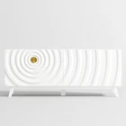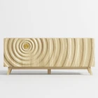 This television cabinet features a distinctive ring-patterned surface finish, complemented by circular gold handles, showcasing a striking artistic flair and design aesthetic. This TV stand features plenty of surface space to keep a 65" TV along with other accent pieces. Crafted from MDF wood, it features cabinet with magnetic door catches and adjustable interior shelves, giving you plenty of space to store your favorite movies and games. Ideal for living spaces, it' s a stylish, functional focal point for modern homes. Features Artistic Closed Storage: The closed storage compartments are designed with metal handles and wave patterns, turning practical storage into an art form. Keep your living space tidy while adding a unique design element to your home. MDF Frame: Constructed from sturdy MDF for long-lasting durability and a natural finish. Sleek Soft-Close Doors: Features 4 doors with soft-close hinges for effortless operation and a refined touch. Suppirts Large TVS: Can be used as a TV stand for TVs up to 65 inches. Easy to Assemble: The tv stand is also very easy to assemble with detailed instructions and tools provided.