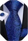 【Gift Tie Set】Silk Royal Blue Extra Long Necktie+Woven Pocket Square+Cufflinks+Gift box.It's a proper gift for birthday,Father's Day,Christmas Day,Valentine's Day,Thanksgiving Day,Anniversary ect. 【Elegant Design】Unique patterns and vivid colors neckties are perfect for big and tall men and easily match all dress shirts and suits for a graceful but trendy look.Becoming the focus of the crowd,make you unique in any situation. 【Suitable Occasions】Stylish and classic men's extra long Blue ties in men's wardrobe essential,will be great for daily life,business work, party,prom,wedding reception, banquet, ceremony, formal meeting,casual party, important moment ect. 【Material and Craft】Necktie and pocket square are made from Silk.2000 stitches jacquard woven craftsmanship, high-density fabric makes the tie non-deformed and soft,giving you more comfortable wearing experience. 【Ties Size】Tie size:63 inches x 3.35 inches,Pocket Square size: 9 inches x 9 inches,Cufflink Diameter:0.55 inches.Best tie size for big and tall men