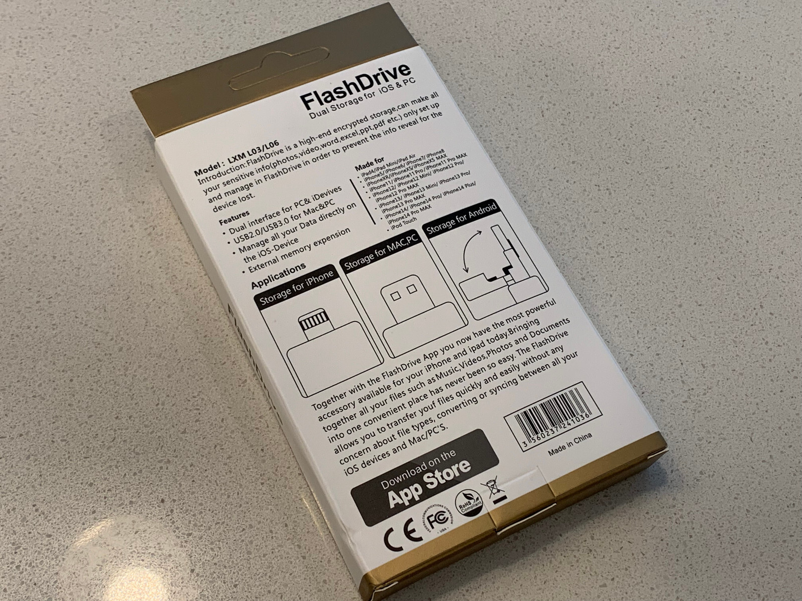 For sale Flash Drive Dual Storage For iOS & PC 64 GB. Condition BRAND NEW in the box. It's the best USB storage for any cell phone, iPad or computer. Allows you to arrange your photo and video library in few seconds. FlashDrive is a most powerful accessory available for your iPhone and iPad today.