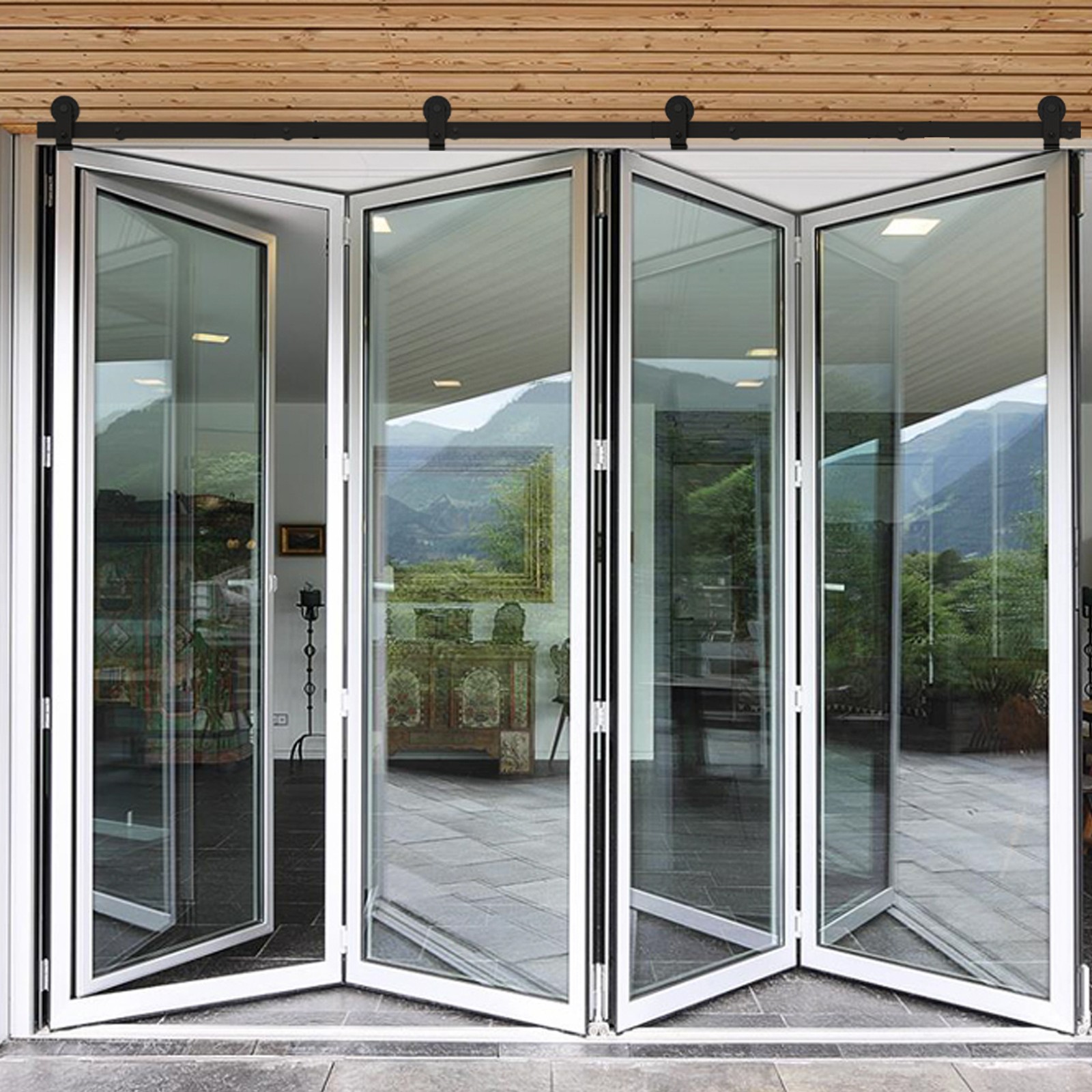 76-Inch Black Bifold Sliding Barn Door Hardware Kit – Brand New Track System
