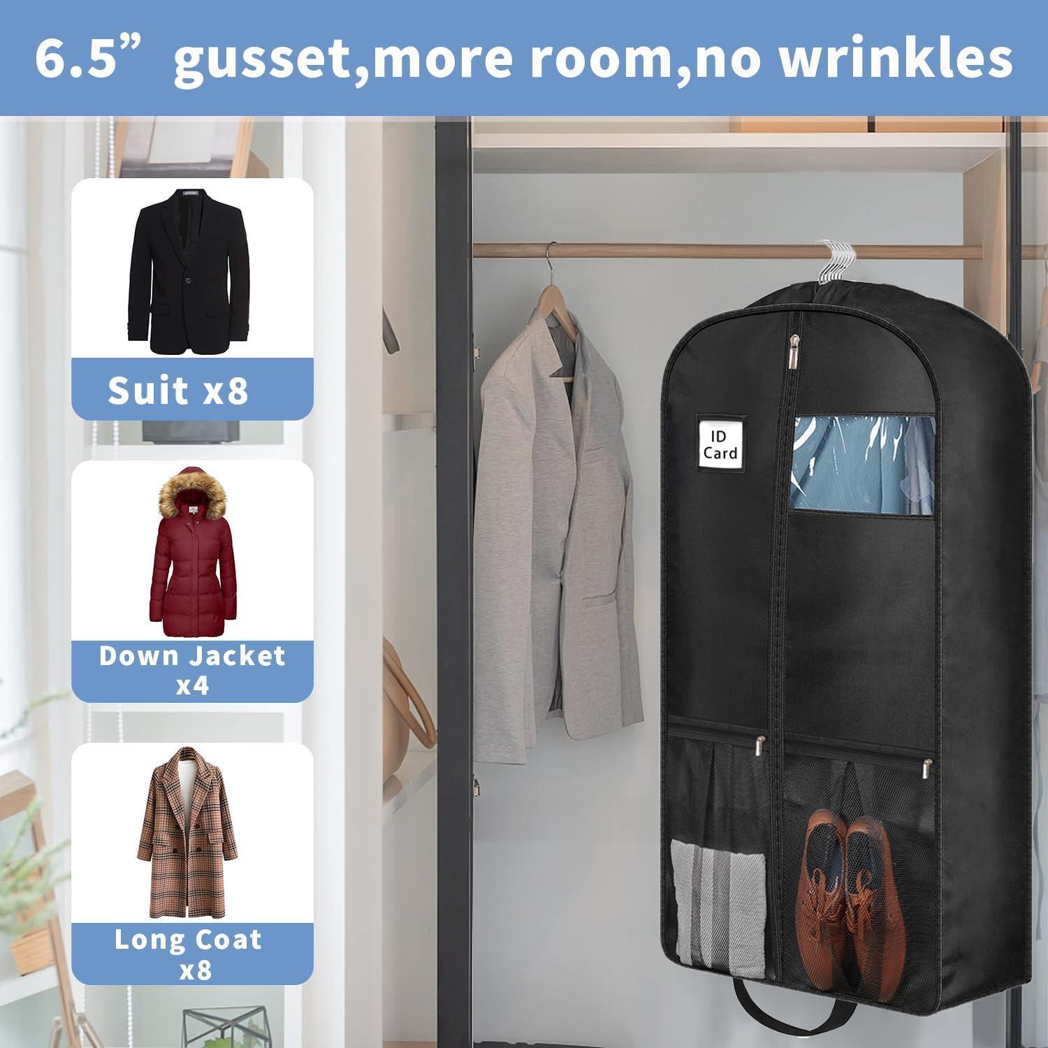 6.5" Gusseted Travel Garment Bag, 43" Durable Suit Bag Storage Hanging Clothes with Pocket Foldable Mens Suit Cover for Shirts, Coats, Dresses (Free & Fast Shipping) Summary Multi-Purpose Travel Bag: Perfect for business trips, weekend getaways, and for anyone who travels often and can be hanging in the closet to keep clothes wrinkle-free. This large garment bag for hanging clothes travel is twice as thick as ordinary clothing bags. Long Size & Handles: Perfect for suits, tuxedos, dresses, and coats, enabling you to put multiple items in one bag, 2 handles travel-friendly, Size: 43" x 24" x 6.5". Clear Window & Metal Zipper: Clear window, easy to identify inside items. The stainless steel 5# zipper is smooth and strong. 2 Large Pockets: Pocket Size : 15.7" x 11.5"; can store size 13 men's and women's shoes, as well as accessories such as shirts, ties, or belts. Durable Waterproof Woven Fabric: The travel suit bag is made of tear-resistant woven fabric, and all seams are reinforced and sewn. Protect your clothes from dust, pet hair, and moisture to ensure durability. Don't worry about tearing when your bag is packed with heavy clothes when you travel. Product Description Say Goodbye to Wrinkled Clothes and Hello to Effortless Elegance with Our Multi-Purpose Travel Bag Whether you're jetting off on a business trip or escaping for a weekend getaway, our garment bag is designed to keep your outfits looking impeccable wherever you go. Hang it in your closet to maintain that fresh-from-the-dry-cleaner look, or pack it up for on-the-go convenience – the choice is yours! Effortless Elegance Awaits: Keep Your Clothes Impeccable with Our Travel Garment Bag! Crafted with premium materials and attention to detail, our garment bag is twice as thick as ordinary clothing bags, ensuring exceptional durability and protection for your wardrobe essentials. No more worries about tears or snags – our tear-resistant woven fabric and reinforced seams are built to withstand the rigors of travel. But it's not just about durability – we've packed our garment bag with features to make your life easier on the road. With its long size and spacious gusseted design (43" x 24" x 6.5"), it's perfect for suits, dresses, coats, and more, allowing you to pack multiple items in one bag with ease. Plus, with two convenient handles, it's travel-friendly and easy to carry wherever your adventures take you. Stay Organized, Stay Chic: Clear Window and Metal Zipper for Effortless Access! Keep your essentials organized and easily accessible with our garment bag's thoughtful design. The clear window lets you quickly identify your items, while the stainless steel zipper glides smoothly and securely, ensuring hassle-free access every time. And with two large pockets for shoes, accessories, and more, you'll have everything you need right at your fingertips. Upgrade your travel experience and protect your clothes in style with our 6.5" Gusseted Travel Garment Bag. Whether you're a frequent flyer or an occasional adventurer, this is one investment that will pay off trip after trip. Say hello to wrinkle-free convenience and goodbye to travel woes – order yours today! ABOUT US We offer the best prices around on high quality products. Our E-store includes media such as books, movies, music and games while offering electronics, toys, sporting apparel, clothing, tools, general home, garden items and more. SHIPPING We are always working hard to ensure your package arrives as soon as possible. Please understand that some factors like weather, high postal traffic, and the performance of shipping companies are outside of our control. We offer free shipping to the US and ship within 3 business days of payment, usually sooner. We do not accept P.O. Boxes. Please provide a physical address. RETURNS We offer a 30-Day Return Policy on items which you are not completely satisfied with. You have the option for a full-refund or an exchange of the item. No returns are available on items shipped outside of the US. CUSTOMER SATISFACTION We try our very best to make sure every customer is completely satisfied. If there's a problem, message us! We're happy to help.