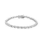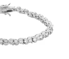 This 6.5Ct Round Simulated Diamond Tennis Bracelet features a white gold plated Sterling Silver design with a secure push lock closure. The bracelet showcases a 5mm white simulated diamond as the main stone, set in a prong style. It measures 7.5 inches in length and is adjustable for a personalized fit. This handmade, nickel-free bracelet is ideal for special occasions like engagements, birthdays, or anniversaries, and can be further customized as per the buyer's requirements, making it a unique and meaningful gift option.