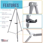 ]]> U.S. Art Supply Ebay Storefront Ordering | Shipping | Returns | International Product Information Part# USA E-853 66" High Gallery Silver Aluminum Display Easel and Presentation Stand - Large Adjustable Height Portable Tripod, Holds 25 lbs - Floor Tabletop Display Gallery model heavy duty use 66" high satin silver aluminum display and presentation easel stand with an adjustable telescoping tripod frame that supports up to 25 pounds. A premium lightweight 2 pound portable easel that quickly collapses down to 36" for storage and easy transportation. Sets up quickly varying from 36" up to 66" high for instant use as a floor, tabletop or an artists field and display easel. Easel has easy turn adjustable locking knobs for quick and easy height and angle adjustments. The adjustable-height display holder arms can be adjusted up and down the legs and then locked into your desired customized position. It's made with premium quality 3/4" diameter reinforced lightweight tubular aluminum metal that makes it tough and sturdy. The interior aluminum leg separators keep the easel very stable, while also keeping the legs evenly spaced apart. The non-skid rubber feet add stability and also protect tabletop surfaces. It's an ideal heavy duty display easel for trade shows, office presentations, event and store signs, large posters, dry erase boards, white-boards, artwork paintings and framed pictures. Easel is frequently used at weddings, art exhibitions and shopping malls for promotions. Easel Dimensions: 36" wide by 34" deep by 66" high as a floor easel; 20.5" wide by 19" deep by 36" high as a table easel. The display holder arms accommodate panels up to 2.2" in-depth. Satin silver anodized finish. U.S. Art Supply 66" High Gallery Silver Aluminum Display Easel and Presentation Stand - Large Adjustable Height Portable Tripod, Holds 25 lbs - Floor and Tabletop, Display Paintings, Signs, Posters The Gallery is Heavy Duty, Instantly Adjustable and Portable Gallery model heavy-duty use 66" high large satin silver aluminum display and presentation easel stand with an adjustable telescoping tripod frame that supports up to 25 pounds. A premium lightweight 2-pound portable easel that quickly collapses down to 36" for storage and easy transportation. Sets up quickly varying from 36" up to 66" high for instant use as a floor, tabletop or an artist field and display easel. Easel has easy turn adjustable locking knobs for quick and easy height and angle adjustments. The adjustable-height display holder arms can be adjusted up and down the legs and then locked into your desired customized position. It's made with premium quality 3/4" diameter reinforced lightweight tubular aluminum metal that makes it tough and sturdy. The interior aluminum leg separators keep the easel very stable, while also keeping the legs evenly spaced apart. The non-skid rubber feet add stability and also protect tabletop surfaces. Securely Display Presentations, Posters and Signs It's an ideal heavy-duty display easel for trade shows, office presentations, event and store signs, large posters, dry erase boards, white-boards, artwork paintings, and framed pictures. Easel is frequently used at weddings, art exhibitions and shopping malls for promotions. Easel Dimensions 36" wide by 34" deep by 66" high as a floor easel; 20.5" wide by 19" deep by 36" high as a table easel. The display holder arms accommodate panels up to 2.2" in-depth. Satin silver anodized finish.