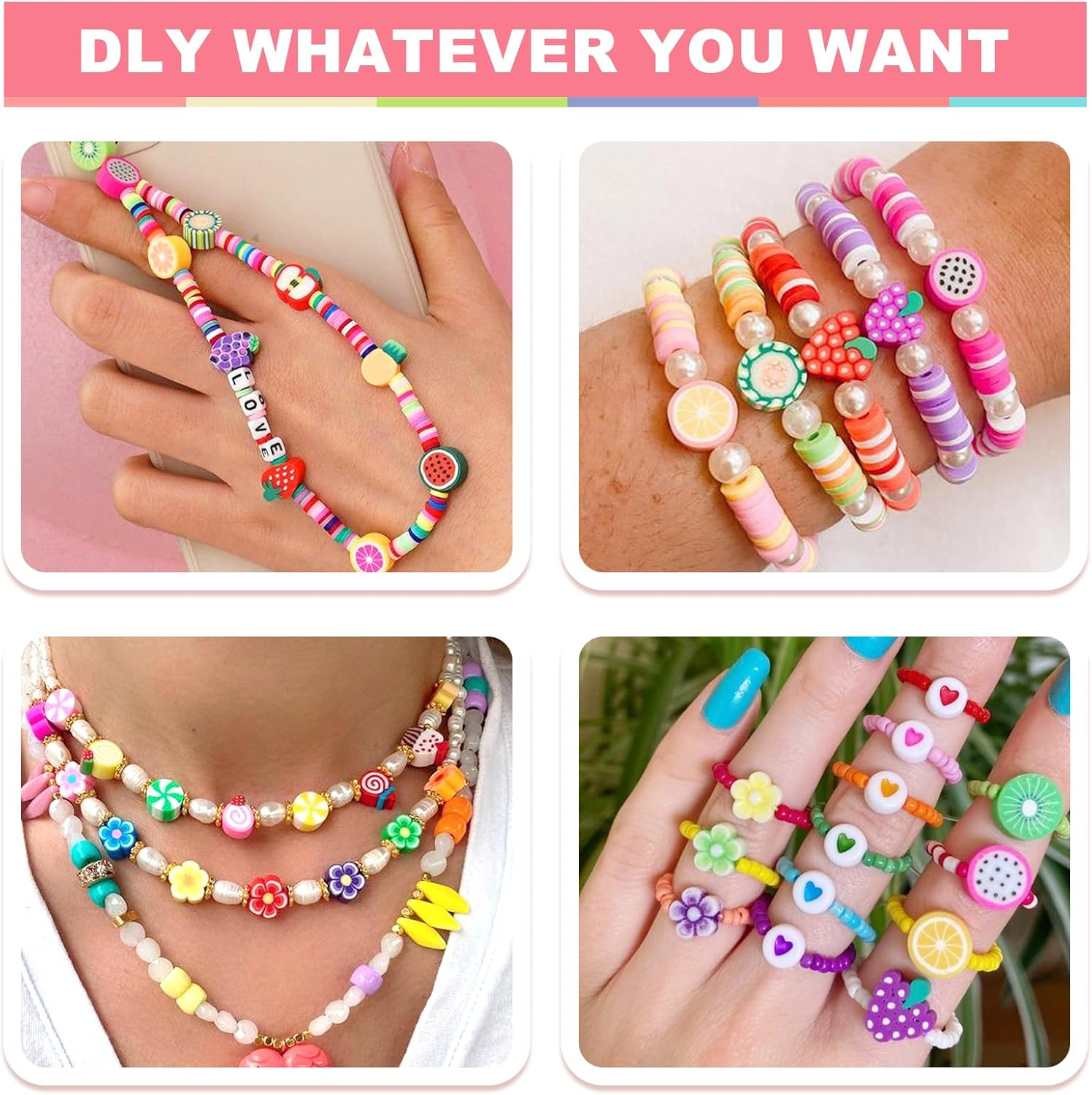 Menu Other Items Feedbacks About Us Contact Us Add To Favorites 660PCS Polymer Clay Beads Bracelet Making Kit, 24 Style Cute Fun Clay Beads, Clay Bead Charms for Jewelry Necklace Earring Making, DIY Bracelet Making Accessories for Kids Girls Age 6-13 VALUE SET: One box contains 24 styles of polymer clay bead bracelets making kit, including letter beads, pony beads, clay beads, animal, Christmas Halloween, ladybug, flower, love, star, rainbow, fruit, smiley face, candy, butterfly, unicorn, ball beads etc. In addition to a roll of elastic thread, the rich variety provides excellent creativity for your DIY project, satisfying all your handmade desires. Suitable for making jewelry and home decor, unleash your imagination. SUITABLE SIZE: Polymer clay beads are approximately 10mm with a 2mm hole; flat clay beads are approximately 6mm with a 2mm hole; alphabet beads are approximately 4*7mm with a 1mm hole. All beads are stored separately in a 24-compartment plastic box, making them very easy to store and carry. ECO-FRIENDLY MATERIALS: Our beads are made of healthy and environmentally friendly materials that are not easy to fade, comfortable to wear, and of superior quality. Whether you are taking a shower, swimming, or engaging in other water activities, you can wear them with confidence. ENJOY DIY FUN: Clay beads charms are suitable for making bracelets, cell phone charms, necklaces, earrings, eyeglasses chains, key chains, hair braids and so on. Try to use your imagination and explore more uses, you will be impressed by your excellent creativity. NICE GIFT CHOICE: Clay bead bracelet making kit is an ideal gift for your friends, you can also make unique decorations for them, they will love it! Suitable for DIY crafts with kids, cute charms for bracelets can improve their creativity, imagination, color perception, hands-on ability and attention. Product Description Redtwo's polymer clay beads are made from safe materials with great toughness and quality. Ideal for kids and adults who love DIY, whether making bracelets, necklaces, earrings, or other fun projects. This vibrant kit has everything you need to bring your ideas to life! 24 Styles of polymer clay beads offer all the options you need for colorful DIY projects, With 660+ polymer clay beads and accessories, you can create a variety of jewelry and crafts.Made from quality materials, these beads provide flexibility, durability, and safety for your creations. Item Specification Item model number SGZ-660 Item dimensions L x W x H 7.5 x 5.2 x 0.6 inches Age Range (Description) Over three years old Color multicoloured Included Components Polymer Clay Beads, Pony Beads, Letter Beads Material Plastic Style Modern Item Weight 6.7 ounces Theme Cartoon Model Name Polymer Clay Beads Bracelet Making kit Seasons All Seasons Art Craft Kit Type Polymer Clay Beads Bracelet Making kit Number of Pieces 660 Special Feature rich variety of beads Product Dimensions 7.5 x 5.2 x 0.6 inches SHIPPING FREE FREE SHIPPING We are always working hard to ensure your package arrives as soon as possible. Please understand that some factors like weather, high postal traffic, and the performance of shipping companies are outside of our control. We offer free shipping to the lower 48 states. We do not accept P.O. Boxes. Please provide a physical address. If you have a problem or question regarding your transaction please contact us immediately. We will work with you to resolve any problem you may have. Thank you