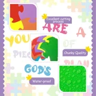 Features: Proper size to apply: Poster board decorations are designed with appropriate size for you to decorate or to DIY, ideal size fits for most board and wall. Simple to operate: School classroom decorations are convenient to be pasted on most flat and smooth surfaces, lively and creative to make your classroom and office full of atmosphere. Specifications: Material: cardboard Color: orange, yellow, green, blue, red, purple Total: 67 pieces Package includes: 67 x Puzzle pieces decors 100 x Glue stickers Notes: Manual measurement, please allow slight errors on size. The color may exist a slight difference due to different screen displays. Children should apply under parents' guidance. What You Receive: we will provide you with 67 pieces puzzle pieces decor and 100 pieces glue stickers, sufficient in quantities and types to meet your daily requirement of using, replacing and sharing Eye Catching Design: puzzle pieces for crafts are colorfully designed with inspirational letters, kids can write their names on blank puzzle pieces, including 6 different colored puzzle cutouts and [you are a piece of god's plan] bible letter cutouts, bring courage and confidence Widely Applicable: cut out letters can not only be applied for wall decoration, but also suitable for craft embellishments, enjoy the fun of DIY more classroom or office decorations, you can thread or punch a hole as you want Reliable for Long Time Use: bulletin board decorations are made of quality cardboard, laminated surface, printed on one side, the color and words are clear, which is covered with waterproof material, not easy to fade or deform Fit for Most Occasions: bulletin board decorations are nice to be applied on boards, chalkboards, wall decor and more, fit for school, classroom, home, party, holiday and more, adding vivid and attractive feelings