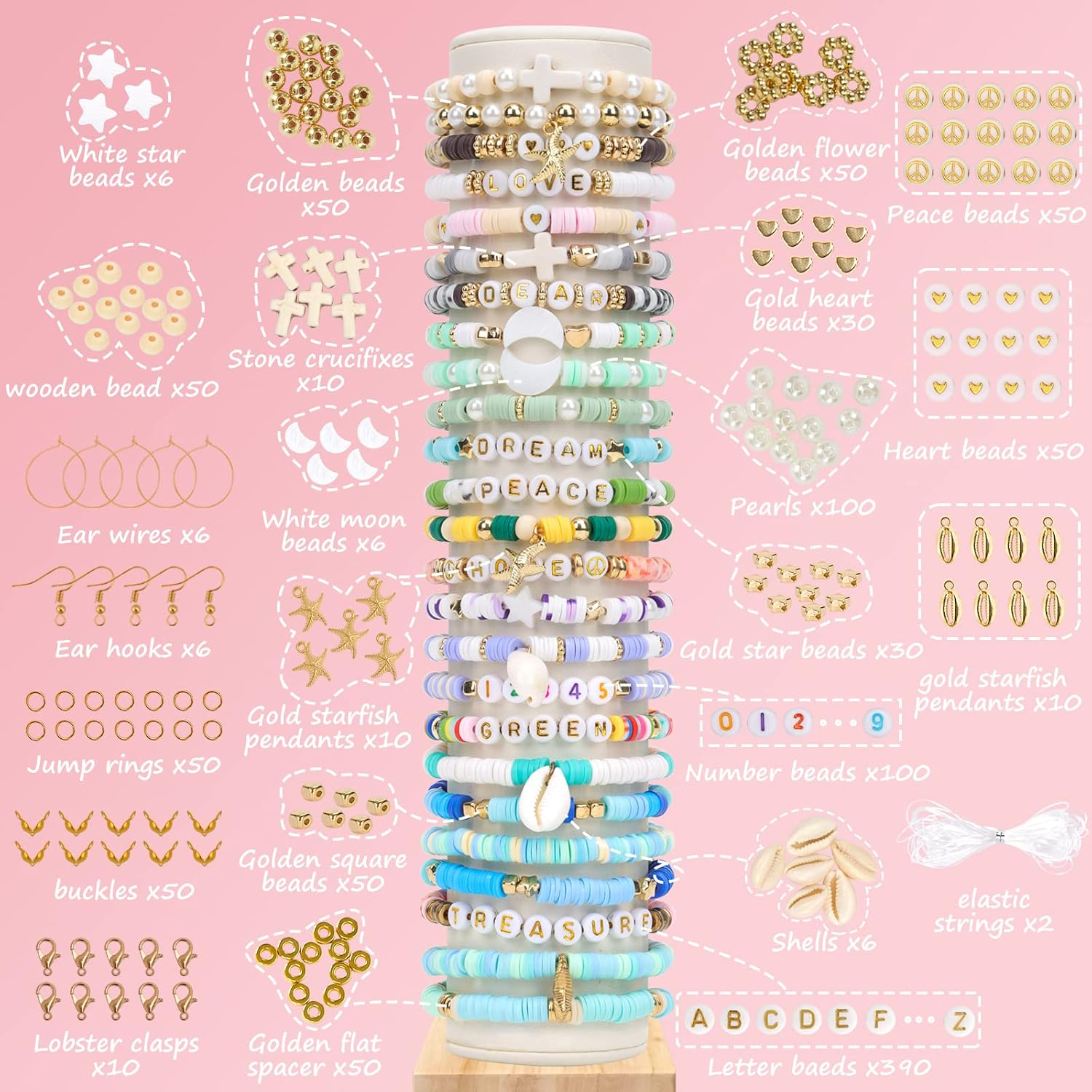 Menu Other Items Feedbacks About Us Contact Us Add To Favorites 6700Pcs Clay Beads for Jewelry Making Kit, 28 Colors Bracelet Making Kit for Adults, Polymer Heishi Beads for Crafts Gifts Clay bead for beginner: This kit contains 5600 pieces of 28 color clay beads, 390 letter beads, 100 number beads, 50 heart beads, 50 peace beads, 50 flat spacers, 50 gold flower beads, 50 gold beads, and etc. The quantity of accessory beads exceeds 1000. Whether you are a beginner or a handicraft enthusiast, it can meet your needs. Premium beads: Clay beads are made of polymer clay, which is a safe makings and can be worn every day. Perfect size: Our heishi beads are the right size, 6mm in diameter, 2mm in hole diameter and 1mm in thickness. Tip: our clay beads are handmade, so it is normal to find slight variations in thickness. Multiple uses: You can use this accessory to DIY necklaces, bracelets, jewelry, and more. It can also be given as a gift to your family. Imagine, on a day off, the scene of you and your family moving away from electronic products and doing handicrafts together would be wonderful. Friendship bracelet kit: This set has enough letter beads and polymer clay beads, you can use it to make 30 bracelets and give them to your partner. Whether it's vacation, concert, or weekend shopping, these bracelets will make your outfit modern and fun. Product Description QUEFE is founded by a group of young entrepreneurs, and everyone has a strong and eager heart to make progress. Maybe you want to have a unique jewelry, or maybe you want to show your creativity, then make your unique beaded works with your own hands. Choose QUEFE to add a wonderful part to your life. 5600 Clay Beads and Thousand Jewelry Accessories 5600 flat clay beads in 28 colors, each color has 200pcs 390 letter beads, 100 number beads 50 heart beads, 50 peace beads 50 flat spacers, 50 gold flower beads, 50 gold beads 30 gold square beads, 30 gold star beads, 30 gold heart beads 10 gold starfish pendants, 10 gold shell pendants 10 lobster clasps, 50 jump rings, 50 buckles 6 ear rings, 6 ear hooks 6 shells, 100 pearls, 10 stone crucifixes, 50 wooden beads 6 white star beads, 6 white moon beads 2 rolls of elastic strings Tips: Due to manual measurement and packaging, please allow a little error in size and quantity. Item Specification Item model number 2160002 Item dimensions L x W x H 0.04 x 0.04 x 0.24 inches Color Multicolor Included Components Beads Material clay polymer Country of Origin China Style Round Item Weight 1 pounds Theme Jewelry,Number Size 5600pcs Model Name 2160002 Seasons All Seasons Art Craft Kit Type Jewelry Making Special Feature Natural Product Dimensions 0.04 x 0.04 x 0.24 inches Number of Pieces 5600 SHIPPING FREE FREE SHIPPING We are always working hard to ensure your package arrives as soon as possible. Please understand that some factors like weather, high postal traffic, and the performance of shipping companies are outside of our control. We offer free shipping to the lower 48 states. We do not accept P.O. Boxes. Please provide a physical address. If you have a problem or question regarding your transaction please contact us immediately. We will work with you to resolve any problem you may have. Thank you