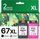 Higher page yield: 705 pages for hp ink 67 black, 455 pages for hp 67 ink tri-color (4x capacity 67xl) Package contents: 1 x 67xl black ink cartridge, 1 x 67xl tri-color ink cartridge, 1 x user guide Compatible for deskJet 2700 series: 2755e 2855e 2842e 2800 2700 2700e 2710e 2720e 2721e 2722 2722e 2723e 2724 2725 2732 2734e 2742 2742e 2752 2752e 2755 1255 Compatible for deskJet 4100 serie: 4155e 4255e 4100 4100e 4120e 4121e 4122e 4123e 4130e 4132e 4133e 4152e 4158e 4155; deskJet plus 4122 4132 4152 4155 4158 Compatible for envy 6000 & envy pro 6400 series: 6055e 6000 6455e 6400 6010e 6020e 6022e 6030e 6032e 6034e 6050e 6052 6052e 6055 6065e 6075 6075e 6420e 6422e 6430e 6432e 6450e 6452e 6458e 6475e; envy pro 6455 6458 6475 6452 Product name: high yield 4x capacity 67xl ink cartridges replacement for hp ink 67, replacement for hp 67 ink cartridges black/color combo pack (1 black,1 tri-color) With latest upgraded chips: all Adoccur 67xl printer ink with the latest upgraded high accuracy chips, ensure perfect compatibility with your printer Strict quality control: All Adoccur 67xl for hp ink 67 are rigorously inspected at every stage of production to meet quality standards and ensure excellent printing results Please Note: If your printer activated the hp+ service, our Adoccur 67xl for hp ink 67 can not compatible with it Please do not touch and remove the chip. Do not touch the ink nozzles Product Description 1 Printer Compatibility 2 Higher Page Yield 3 Reliable Printing You can rely on Adoccur 67XL for HP Ink 67 because: Higher Page Yield: Up to 2.5X more prints for hp ink 67 XL. Page yield: 755 pages for hp 67XL black, 455 pages for hp ink 67 XL tri-color. Quality Printing: All Adoccur 67xl hp printer ink for hp 67 ink cartridges are rigorously inspected at every stage of production, can bring you excellent printing results. With Lastest Upgraded Chips: All Adoccur 67xl hp printer ink for hp ink 67 are equipped with the latest upgraded high accuracy chips, ensures perfect compatibility with your printer. Full Range of Color: High yield 67XL ink cartridges for hp 67 ink cartridges black/color combo pack includes Black, Cyan, Magenta, Yellow to fulfill your daily and business needs. Please Note: If your printer activated the HP+ service, our Adoccur 67XL for hp ink 67 can not compatible with it.