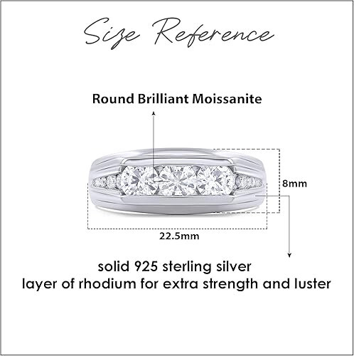 Ring Size:10Main Stone Color:WhiteCountry of Origin:United StatesTotal Carat Weight:0.85Material:MetalOccasion:Anniversary, Birthday, Christmas, Engagement, Valentine's Day, WeddingSetting Style:Channel-SetMain Stone:MoissaniteCut Grade:Very GoodMetal:Sterling SilverDepartment:MenMain Stone Creation:Lab CreatedType:RingBrand:affyjewelryMetal Purity:925Style:BandMain Stone Shape:RoundMain Stone Treatment:Not Enhanced