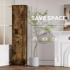 69" Tall Storage Cabinet with 2 Doors, 1 Drawer and Adjustable Shelves, Bathroom Product Features 【Large Storage Space】This tall storage cabinet cleverly combines adjustable shelf space and hidden cabinets to provide ample storage space. It has 2 doors 1 drawer 7 storage spaces. The upper cabinet can store your beauty products, the lower cabinet can store heavy objects and sundries. 【Multipurpose】This floor storage cabinet is very practical, not only can be used as a sideboard suitable for kitchen, but also can be used as bathroom storage cabinet, living room floor cabinet, or even a bookcase in your home office, it depends on you. 【First Choice for Small Spaces】Slim design of narrow storage cabinet, small footprint, only 15.75"W X 11.81"D X 68.9"H, perfect for narrow corners, and is a great choice for urban small apartments and small spaces. 【Stable and Durable】This narrow tall cabinet is made of high-quality particleboard, giving you long-lasting durability and extraordinary experience. Meanwhile, 4 solid wood legs on the bottom and an anti-tip kit on the back add extra stability. Description