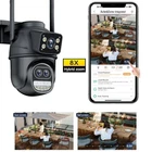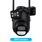 3-Lens with 2-Screen Auto Tracking PTZ WIFI Camera 3-lens, 2-screen, Notifications alarm, humanoid tracking, two way voice intercom 360 monitoring, full color night vision, IP66 waterproof, mobile phone remote monitoring,Share video, SD card storage, 24 hours video recording Two different cameras for sale 8MP wifi camera is dual lens, 12MP wifi camera is three lens. Main Features: - 8MP Dual lens camera. Top Lens is 3.6MM; Bottom Lens is 3.6MM - 12MP Three lens camera. Top Lens is 3.6MM; Bottom Lens is 3.6MM + 12MM - 12MP camera supports 8X hybrid Zoom; 6MP camera supports 4X digital Zoom. - Three-lens dual-sensor dual-screen, wide-angle Viewing + Long Distance Viewing to achieve clear monitoring from far and near; - Dual light source design, built-in infrared light + white light, night vision infrared and night vision full color can be set; - Pan Tilt Move: Bottom Lens: Horizontal: 355 degree; Vertical: 90 degree. - 2.4G WIFI + RJ45 network port for Internet access; - Support TF storage and cloud storage (need pay in iCSee app); - Two-way voice intercom, two-way video synchronous recording and playback - Humanoid detection Smart Alert: Motion Triggered with Alarm, APP Push notifications and Alarm recording - Auto Tracking: When ip camera detects object moving, it will auto move follow the object. -Smart Phone APP name: "iCSEE" from Google Play or iOS APP Store Product Overview 1x PTZ Camera 1x User Manual 1x Power Supply 1x Screws Bag 8MP / 12MP Camera Version * 8MP= 4MP Lens +4MPLens, Two Lens Each lens is 3MP. * 12MP= 4MP Lens +4MP+4MPLens, Three Lens Each lens is 4MP. 4X Digital Zoom (Only 8MP camera support ) If you need view more details, press and hold the screen with both hands to Zoom in/out and see more details. 8X hybrid Zoom (Only 12MP camera support ) You can achieve 8X zoom of the camera through the mobile APP. AI Humanoid Detection *When the security camera detect motion, Led show up to scare thief; *Cameras can automatically track people's whereabouts in view. Moving Auto tracking After locking the target, the camera will adjust the pan rotation automatically, Tracking Moving Human and push alerts notifications to your Smartphone. Clear Night Vision CCTV Camera *Equipped with IR-Cut led lights, up to 30 meters night vision distance, so that you can get high quality video even at night. *The smart IR-Cut filter switches automatically between day and night. Two Way Audio CCTV Camera Built in microphone and speaker,support real time video,which allows you talk with your visitor in real time wherever you are. Rotate PTZ Camera Remote control the surveillance camera horizontal rotation 270°, support 355° view angle, you can monitor anywhere and any details you want via mobile App. Three connection modes ① Bluetooth connection ② Wifi connection(2.4G HZ WIFI) ③ RJ-45 Cable connection IP66 Waterproof Video Surveillance *Level IP66 which can provide surveillance camera normal working, and keep camera durable. *No worry about other unexpected conditions, such as thunder, rain, snow. SD Card & Cloud Storage First month cloud storage and Max 128G SD card Record ,data security is more stable . If you want to keep using Cloud Service, you just need to pay for it , if you don't need to use , it will stop it automatically when you don't pay for the fee. ICSEE App Remote Access Share the same Vision with your families , let all of you protect and pay more attention to your house. P2P technology let you be able to view the live situation of your house wherever you are , just with the P2P account on the app via your Smartphone or tablet . How to Configure the Camera in the iCSee App ① Download icsee app from Google Mall or other software malls ② There is a reset button at the bottom of the camera. Press and hold the reset button for 10 seconds. When you hear the sound of a successful reset, the camera has been reset successfully. ③ Connect the camera through the 2.4G HZ Wifi network band, follow the 6 steps in the picture to connect, and you can configure it successfully. How to Configure the Camera in VMS Software ① The username and password of VMS software are both admin ② Find the complete serial number, password and user name in the icsee app and enter it into the VMS software and add it successfully ③ Double-click the serial number to watch online in real time