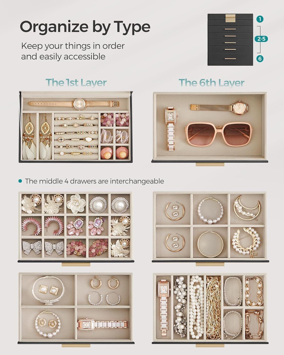 3.3 Cu ft One Reversible Door Mini Fridge Refrigerators Estar Energy Efficient 171.86 USD 184.8 USD Free shipping 7% off Umbrella Base Stand 14.9 lbs. Patio Cantilever Offset Weighted Yard Outdoor USA 64.83 USD 69.71 USD Free shipping 7% off 3-Tier Entertainment TV Stand up to 50 inch TV Living Room Console Table New 49.54 USD 55.3 USD Free shipping 10% off Movie Theater Popcorn Popper Gourmet Popcorn Maker Machine with Nonstick Kettle 103.99 USD 119.79 USD Free shipping 13% off 50lb Kettlebell, Casting Iron, Durable Black Hammertone Finish Strength Training 76.07 USD 81.8 USD Free shipping 7% off Kids Colorful Folding Table and Chair Set Playroom Furniture Blue, 5 Piece 102.69 USD Free shipping Recliner Chairs Single Modern Reclining Sofas Home Theater Seating Club Chairs 162.29 USD Free shipping Protector Series Single Scoped Double Non-Scoped Rifle Case Locking Gun Storage 54.61 USD Free shipping Griddle Leg Kit with Adjustable Legs and Base Collapsible Sturdy Steel 1-Piece 56.31 USD 60.55 USD Free shipping 7% off BMS1250 Resin Vertical Storage Shed Building 22 Cubic Feet Outdoor Storage Sheds 254.4 USD 273.55 USD Free shipping 7% off Black 5-Piece Card Table Set 4 Sturdy Chairs Dining Foldable Table Furniture 93.45 USD 100.48 USD Free shipping 7% off 200W Portable Power Station FlashFish 40800mAh Solar Generator W/ 110V AC Outlet 116.99 USD 134.79 USD Free shipping 13% off About this item [Storage, 6 Layers] Keep all your jewelry organized in this jewelry box—small pieces of jewelry go in the various slots of the top 5 layers, and sunglasses and watches go in the big bottom drawer [Clear Glass Lid] The see-through glass lid of this jewelry organizer allows you to see and find your favorite jewels at a glance while protecting them from dust, keeping your jewelry ready to wear and clean [Chic & Durable] Elegant black and gold colors, shiny metal handles, soft velvet lining, neat stitching, quality PU, and sturdy MDF—all these elements combined make this jewelry case stylish and durable enough for your ever-growing jewelry collection [Perfect Gift Idea] Gift this original design jewelry box to your loved ones for their birthday or anniversary to surprise them! Or, treat yourself to this fancy jewelry box—you deserve it! [Versatile Use] This modern jewelry holder looks nice whether displayed on the dresser of your bedroom or your cloakroom to organize your pins, necklaces, rings, bracelets, and other accessories Flushable Wet Wipes Resealable Bag 168 Count Septic Safe Gentle Skin Clean New 10.82 USD Free shipping 18 Inch Towel Bar Mediterranean Bronze Zinc Constructed Durable Bathroom Fixture 43.11 USD Free shipping Futon Sofa Bed Sleeper Couch Modern Couch Living Room Compact Versatile Design 212.49 USD Free shipping Micro Spincast Combo 4'6" Fishing Rod Reel Ultra Light Freshwater Tackle New 26.72 USD Free shipping Ceramic Mug Reactive Glaze Ergonomic Handle Dishwasher Microwave Safe Coffee Tea 8.46 USD Free shipping 3-Piece Crinkled Gauze Comforter Set Full Queen W/ Pillow Shams Storage Bag New 80.0 USD Free shipping HydroView Ceramic Glass Cleaner Water Repellent Protective Coating Auto Home Use 28.71 USD Free shipping Winter Wonderland Doormat Coir Fiber Outdoor Mat Non-Slip Welcome Rug Durable US 25.53 USD Free shipping Ceramic Baking Dish W/ Acacia Wood Lid Double Handle Oven to Table Cook Serve US 30.94 USD Free shipping 45-Piece Flatware Set 8 Stainless Steel Utensils Serving Spoons Forks Knives New 24.23 USD Free shipping Clear Plastic Storage Box 6 Count School Supplies Craft Organization Utility New 9.02 USD Free shipping Kids Pretend Play Dishwasher Toy W/ Interactive Features 14 Accessories Ages 2+ 53.11 USD Free shipping