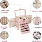 You may also like Power PODS Febreze Sport Odor Defense Laundry Detergent Packs 25 ct Pack New 19.0 USD 20.0 USD Free shipping 5% off High Mileage Full Synthetic Motor Oil 5W-20 API SP ILSAC GF-6A 5QT Jug New 27.45 USD 28.89 USD Free shipping 5% off 12x24x1 MERV 8 Pleated Air Filters 6 Pack High Efficiency & Allergen Removal New 47.44 USD 49.94 USD Free shipping 5% off High Mileage 10W-30 Full Synthetic Motor Oil 5QT Superior Wear Protection New 27.45 USD 28.89 USD Free shipping 5% off Grill Boss Dual Fuel Camp Stove Butane Propane Gas Camping Hiking Outdoor New 73.95 USD 77.84 USD Free shipping 5% off Combo Moving Boxes Kit Medium Single Walled & Small Corrugated Box Pantry Closet 33.73 USD 35.51 USD Free shipping 5% off 3-in-1 Instant Coffee Mix Sachets Rich Natural Aroma Vietnam Value 20 ct New 29.48 USD 31.03 USD Free shipping 5% off 5 Gallon Storage Totes W/ Lids 6 Pack Heavy-Duty Containers Durable Made in USA 74.0 USD 77.89 USD Free shipping 5% off Garden Tool Organizer Heavy Duty Yard Tool Tower RackGarage Storage Organization 49.27 USD 51.86 USD Free shipping 5% off Automatic Blue 2-Person Umbrella Wind Resistant Mesh Case 56" Canopy UPF 50 New 25.03 USD 26.35 USD Free shipping 5% off 2-Pack Folding TV Tray Tables in Walnut Lightweight & Durable 19x15x26" Set New 29.5 USD 31.05 USD Free shipping 5% off 60-Piece Torx & External Torx Socket Set S2/CrV Steel Supreme Torque Output Kit 67.79 USD 71.36 USD Free shipping 5% off About this item Product parameters: Product name: double door & 6 drawers jewelry storage box, material: pu leather++ flannel, packing: 1 pack of desiccant/single PE bag/packing box, size: 10.6''*6.6''*11.02'' , Weight: 6.063 lbs UNIQUE DESIGN:Earring Jewelry Organizer boasts a unique , beautiful and a more convenient design than the other jewelry boxes out there. Our talented team of designers have worked hard to produce the perfect balance of modern ,sophistication, beauty and class to create this unique box with its gorgeous large mirror and attractive metal buckle. Unlike others our box possesses a magnetic snap that can be easily opened and closed with one hand for easy use. GIFT BOX & BLANK CARD - An elegant gift box and blank card is included with each Jewelry box for the most presentable gift giving. This makes a great gift for a mother, girlfriend , wife, daughter, colleague, friend or any other special woman in your life. This jewelry box for women is an ideal gift for Valentine's Day, Mother's Day, Thanksgiving, Christmas, birthdays and weddings. The high-grade jewelry storage containers is a good gift for women, girls, mothers, wives. If you have any questions about the product, click on the seller's name behind "sold by" at the bottom of the shopping cart, you can get help at any time. The large jewelry box includes earring boards, ring card slots, watch pillows and large drawers for glasses storage. Watches, necklaces, earrings, brooches, hair accessories, sunglasses, etc. can all be stored independently. Some partition boards can be moved and disassembled, and the flexible design allows you to adjust it according to your personal needs.