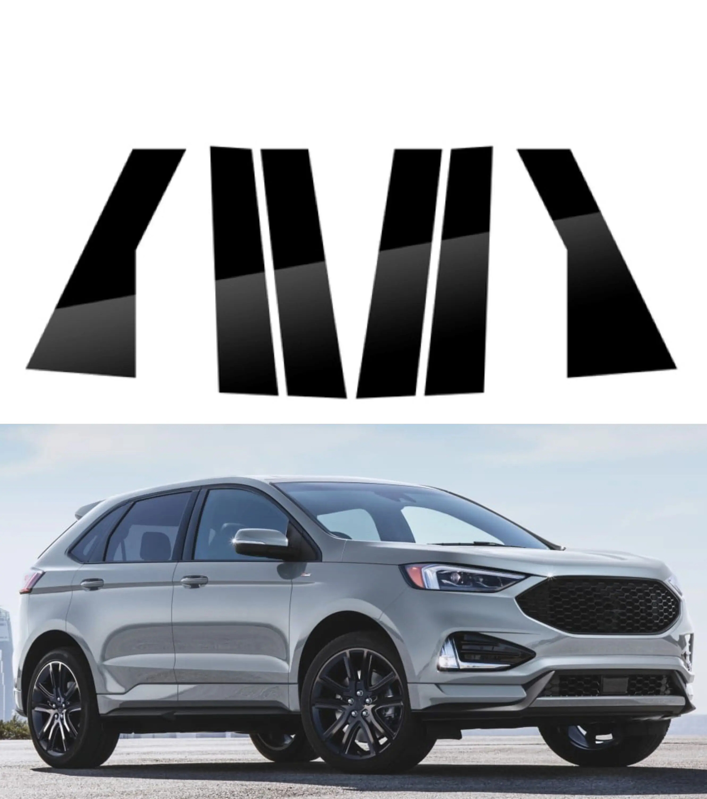 6PCS Polished Pillar Posts For Ford Edge 2015 2016 2017 2018 2019 2020 Window Trim Cover BC Column Sticker Fit: For Ford Edge 2015 2016 2017 2018 2019 2020 Features: *Give your an awesome luxury look in minutes *Made by automotive grade PC plastic cement *self-adhesive tape on the back *Pre-cut shape for easy installation *Ultra long lifespan for outdoor use, will not fade or run even under extreme weather *Can be removed without residue if needed *Car wash and wax safe Specifications: Material: PC Plastic Colour: Black Quantity: 6PCS Pasting Step: 1.Make sure to clean and dry the install location. 2.Compare with the install location, find the best location to install. 3.Tear off the glue sticker, use the hair dryer to warm up the adhesive tape before install. 4.Fixed position, stick from one side. press firmly free minutes. 5.Don't exposure to sunlight or touch the water within 24 hours. Package Contents: 6PCS Window Pillar Posts Cover Trim