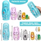 6 Cartoon Animal Patterns - Elephant: 6.42", Hippopotamus: 4.33", Zebra: 3.15", Lion: 2.4", Crocodile: 1.57", Monkey: 1", a perfect match, catering to your little . Premium Quality - Our stacking toys are all crafted from natural wood, handmade by our senior artisans, with a smooth finish, splinter-free and durable. -safe - Don't worry about the paint on the nesting doll. As the paint is water-base and BPA-free, no shedding or chipping issue, 100% -safe. Preschool Toys - Our animal pattern dolls are perfect as kid's preschool toys, as these nesting dolls can improve children's hand-eye coordination, stimulate their problem-solving skills and develop their color recognition abilities. Versatile Applications - These handmade nesting dolls are ideal gifts for birthday, Thanksgiving, Christmas and New Year parties. On top of that, these Matryoshka dolls are perfect home, office, kindergarten, etc.