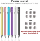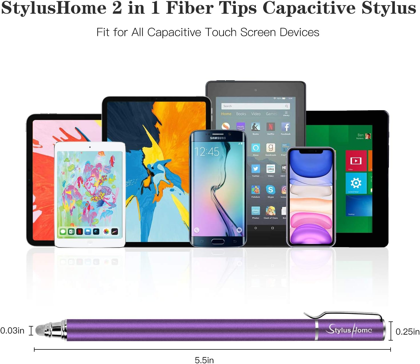 【2 In 1 Design Sensitive Stylus】2 different sizes of fiber tips on both sides of the stylus pen, which give you 2 options to use, provide smooth drawing and senstivity writing experience on touch screens, convenient for clicking and browse on your screen devices. 【Anti-scratch Tip Stylus Pens】The touch screen stylus has an exquisite soft fiber tip, which is suitable for a capacitive touch screen and it can protect your screen from scratching and keep no fingerprints. 【Universal Capacitive Stylus】Compatible with all capacitive touch screen devices, including iPad, iPad Pro, iPhone, Android tablets & smartphones, Samsung Galaxy, and so on. 【Replaceable Fiber Tips】These stylus pens have both two ends fiber tips that are replaceable. Replacing can be done within seconds without a tool. 12 extra replacement fiber tips included (6 small fiber tips and 6 large ones), effectively extending lifetime of the stylus. 【Ideal Gift For Family and Friends】Get 6 of the colorful stylus at an unbeatable price would be the ideal Christmas/birthday/back to school/office gift for family or friends. Product Description 2 in 1 Fiber Tips Stylus Comprehensive Usage Sensitive fiber tips protect your screen from scratching, fingerprints or grease. Different fiber tips size with a clip design, easily clip in your pocket, book, diary, etc, you can carry it to anywhere you want. You can use it on different occasions(at house, at school or somewhere else), which is very convenient and useful. Warm Tips: 1. Normally our stylus won't cause scratches on touch screen, but we still suggest you to use a screen protector on your device to protect the screen from any possible damage/scratches which may be caused by dirt on screen, damaged tips or defective product of low probability. 2. Before using the stylus on your device, make sure both the device and the fiber tip is clean. Dirt can catch onto the fiber tip which may result in reduced connection and in some cases may even scratch your screen. Package Contents: 6 x Stylus 6 x 0.2" Replacement Fiber Tips 6 x 0.24" Replacement Fiber Tips 1 x Product Manual Add to Cart Add to Cart Add to Cart Add to Cart Add to Cart Customer Reviews 4.6 out of 5 stars 311 4.6 out of 5 stars 1,706 4.4 out of 5 stars 4,045 4.5 out of 5 stars 4,373 4.7 out of 5 stars 2,524 4.5 out of 5 stars 636 Price — $9.99 $ 9 . 99 $7.99 $ 7 . 99 $8.99 $ 8 . 99 $9.99 $ 9 . 99 $9.99 $ 9 . 99 Ipad ✓ ✓ ✓ ✓ ✓ ✓ Iphone/Android/Samsung/Tablets ✓ ✓ ✓ ✓ ✓ ✓ Replacement Tips Included 2 Disc & 2 Fiber Tips NO NO 4 Rubber Replacement Tips 6 Fiber Tips 4 Fiber Tips No Batteries Required ✓ ✓ ✓ ✓ ✓ ✓ No Need Bluetooth ✓ ✓ ✓ ✓ ✓ ✓